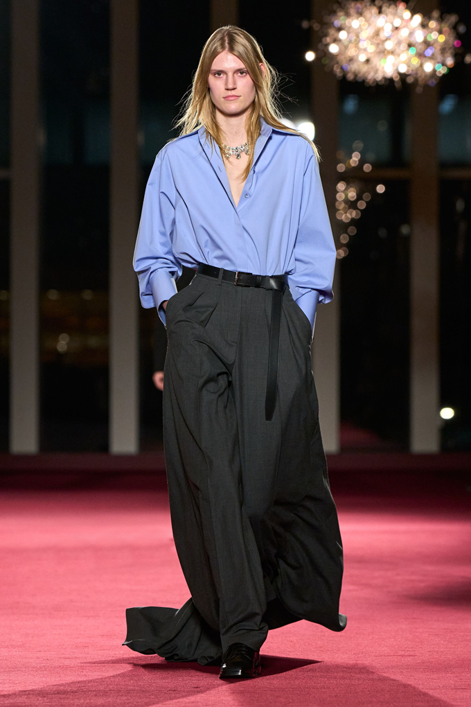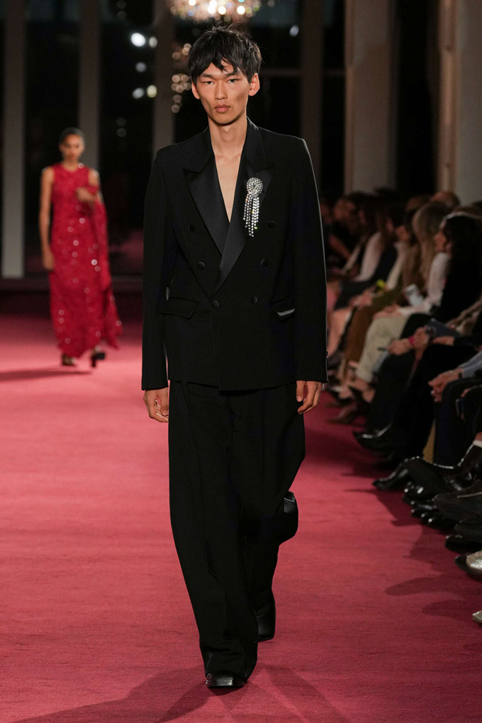 이브닝웨어는 트레인 디테일의 트라우저와 드레스, 남성복에서 영감받은 셔츠, 화려한 자수 등을 통해 거침과 화려함 사이의 균형을 조화롭게 풀어냈다.