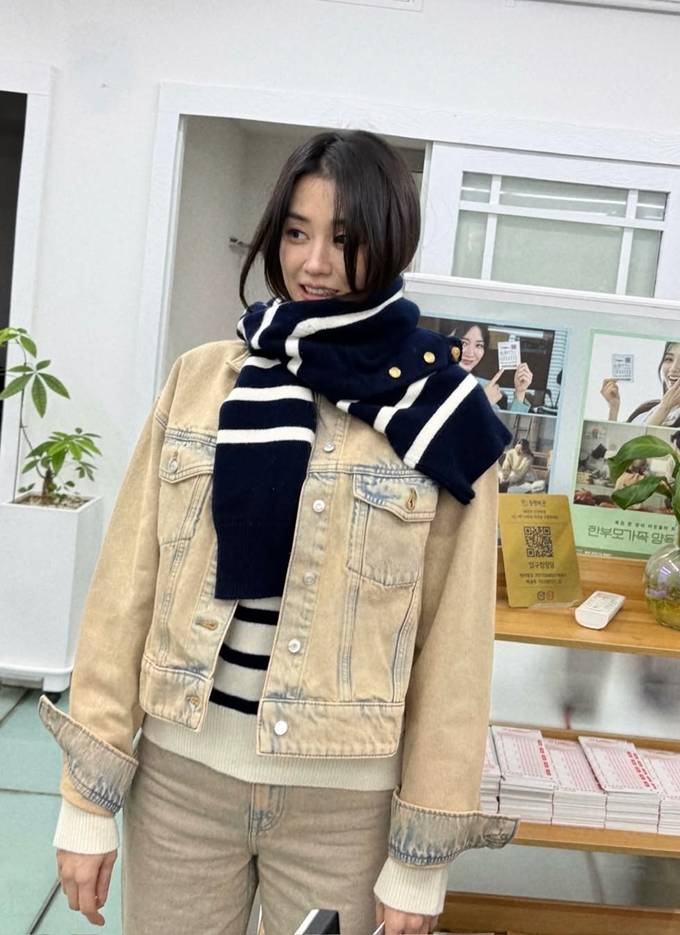 박하선은 부드러운 샌드 톤의 데님 재킷과 팬츠를 매치한 톤온톤 청청패션으로 한층 따뜻하고 내추럴한 무드를 강조한 것이 포인트다. 여기에 아이보리 니트를 레이어드해 계절감과 포근함을 동시에 살렸다.