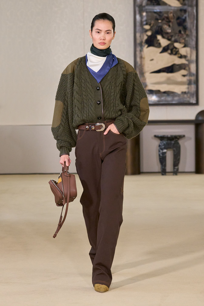 최고급 스웨이드 소재의 카펜터 팬츠는 작업복의 전형적인 형태를 한층 고급스럽게 재해석하고 클래식한 터틀넥은 후드티로 변형되며 눈길을 끌었다.