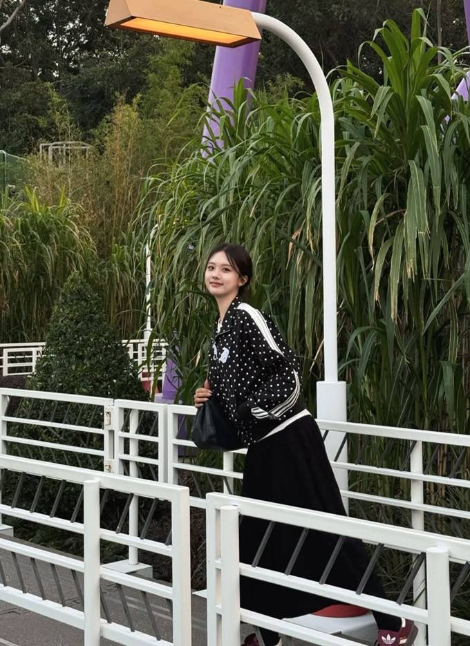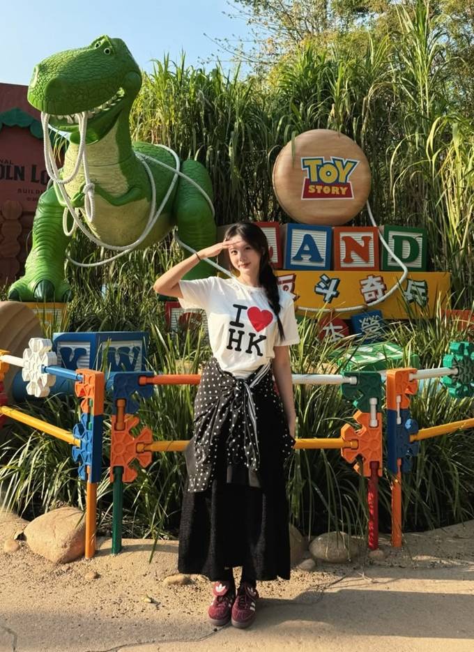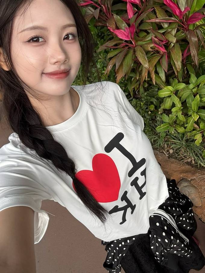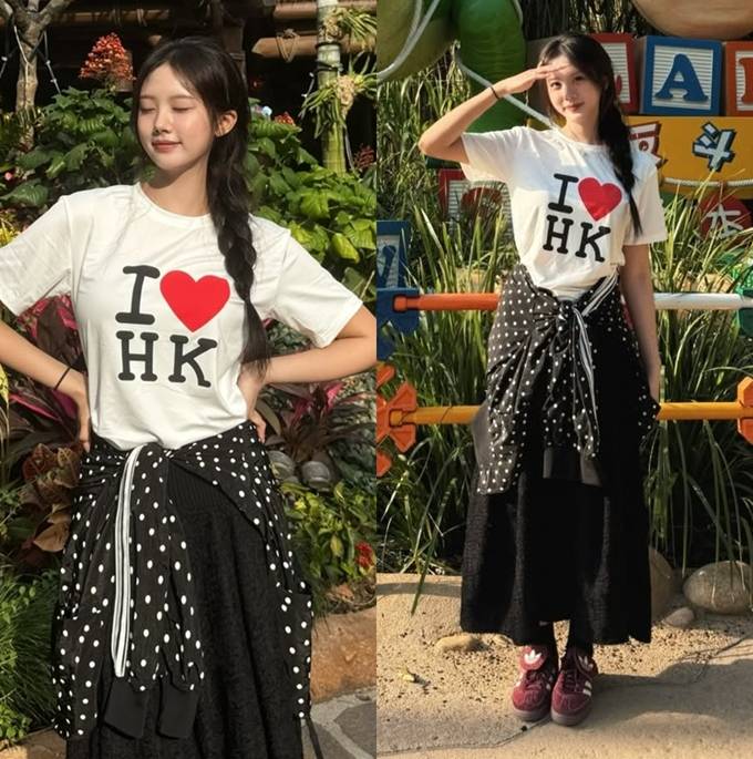 공개한 사진에서 재시는 “I♥HK”이라는 글이 디자인된 화이트 레터링 티셔츠에 블랙 땡땡이 집업 재킷을 걸친 여행룩으로 청순하면서도 발랄한 대학생 여친 같은 스타일을 연출했다.