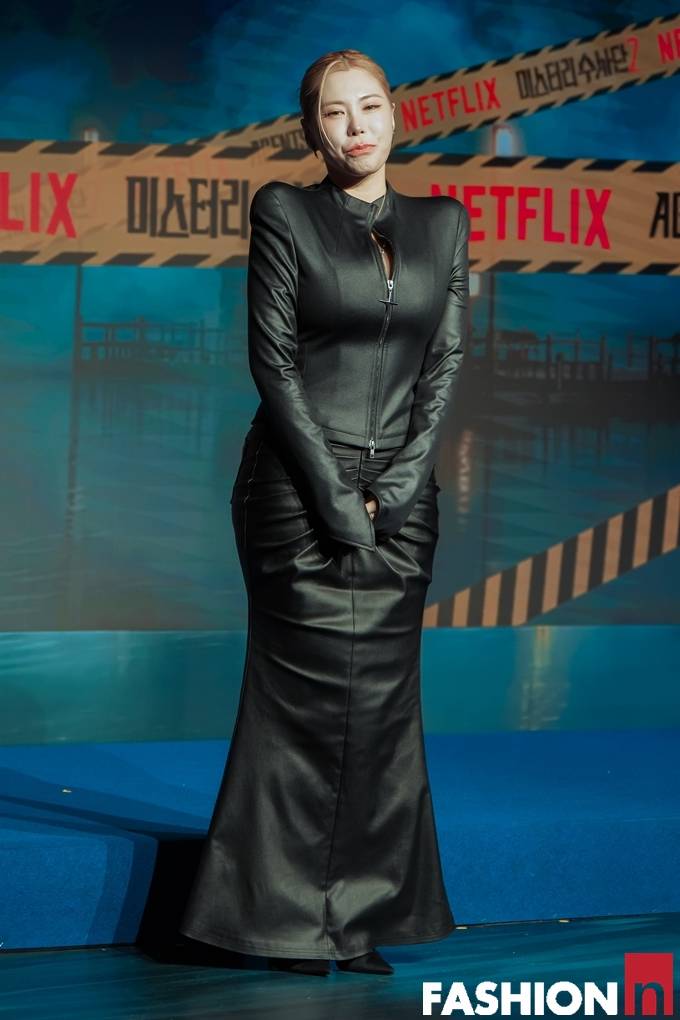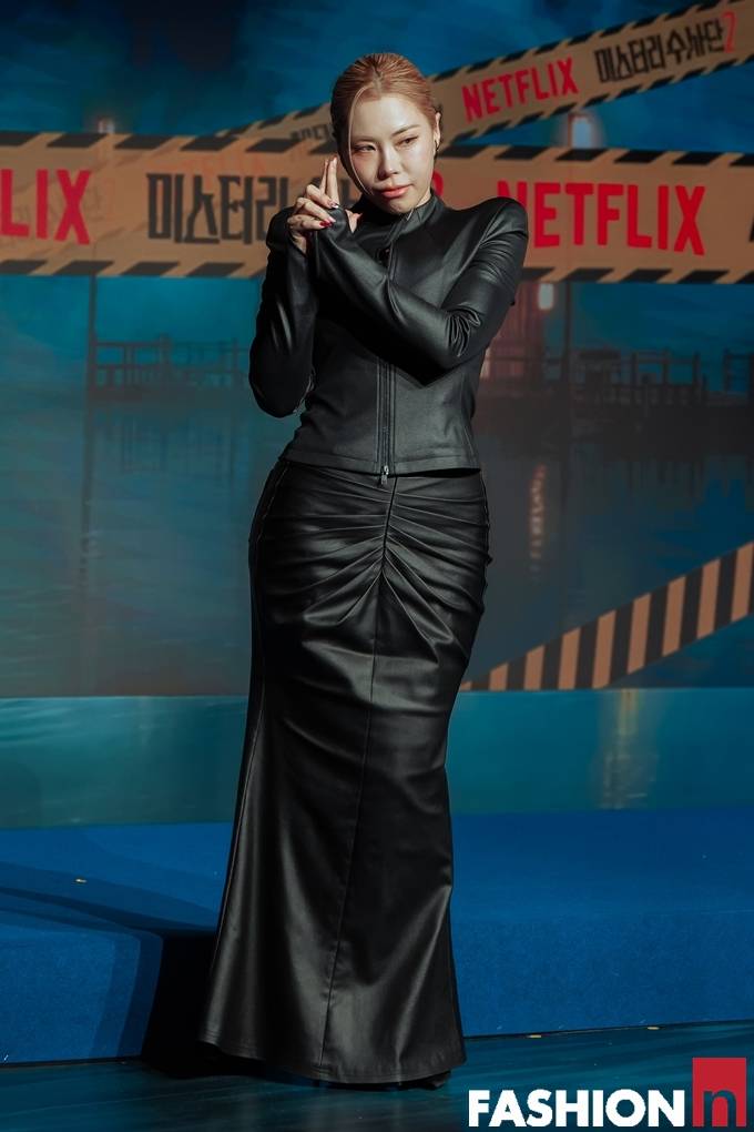 안무가 가비가 탄탄한 머메이드 올 블랙 레더 핏으로 시선을 사로잡았다.
