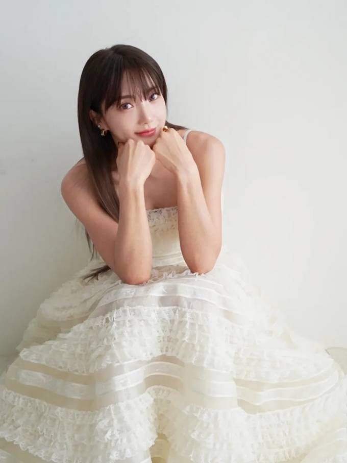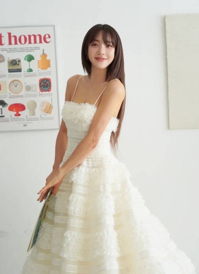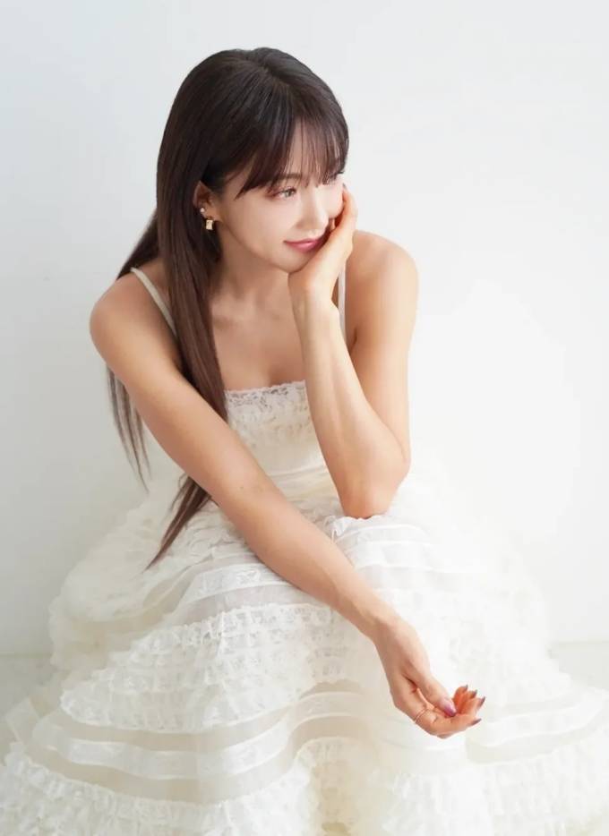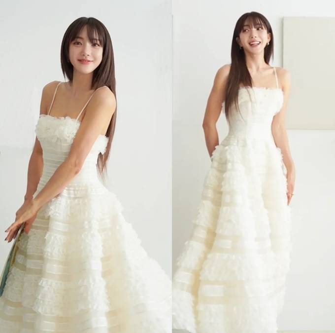 공개한 사진에서 바다는 쇄골 라인이 드러난 화이트 러플 슬립 드레스룩으로 큐티하면서도 로맨틱한 스타일을 선보였다.