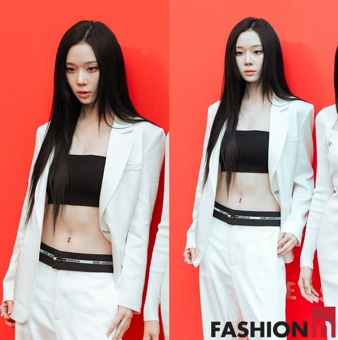 그룹 에스파(aespa)의 윈터가 복근을 노출한 강렬한 흑백 대비 테일러드 슈트룩으로 시선을 올킬했다.