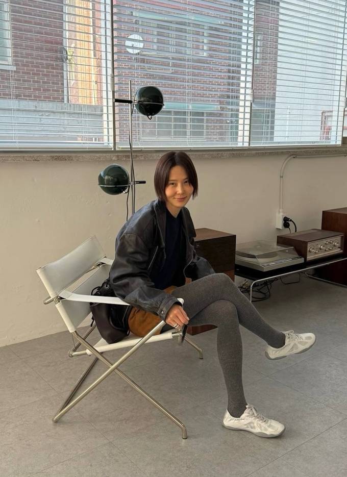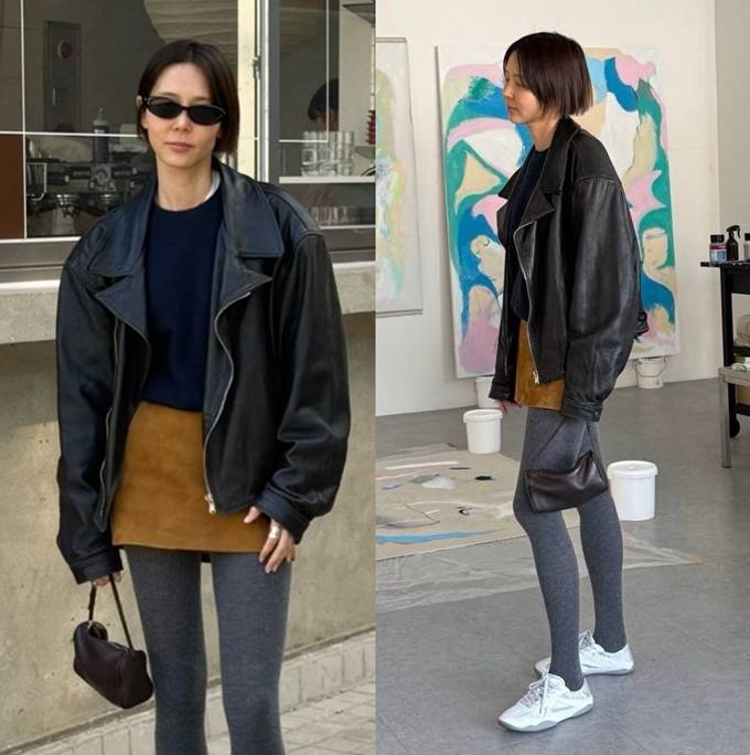 공개한 사진에서 김나영은 늘씬 각선미가 드러난 타이즈와 짧은 미니 스커트를 입고 오버핏 가죽 집업 재킷을 걸친 외출룩으로 걸리시하면서도 힙한 봄 패션을 완성했다.