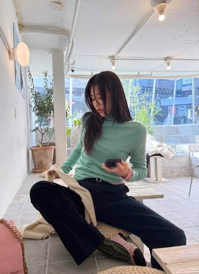 박하선, 스타일에 봄이 왔네! 핑크·그린·화이트 봄내음 솔솔 숄더 로빙 레이어드룩