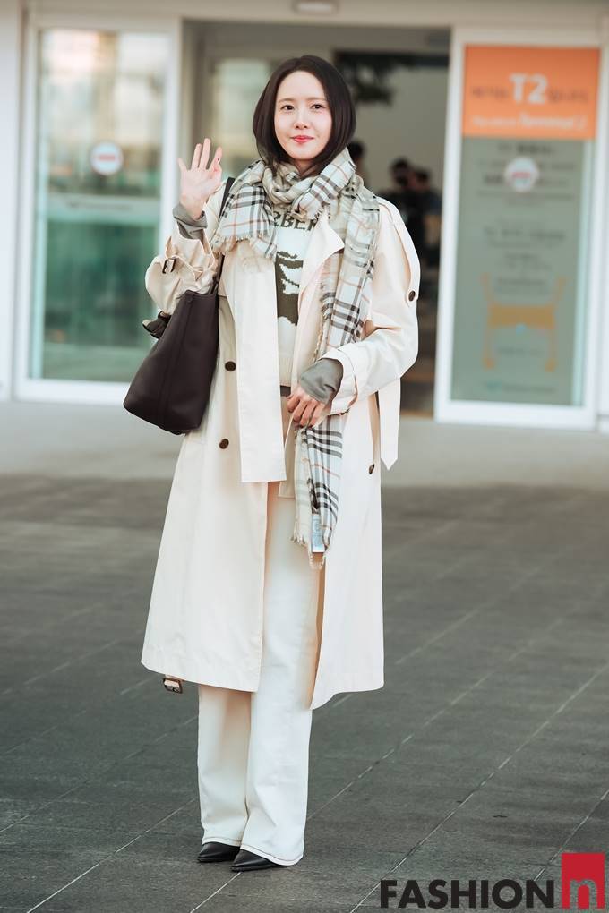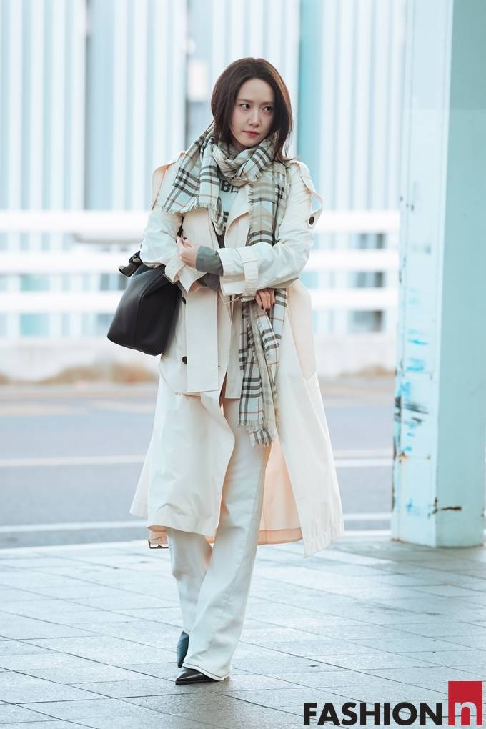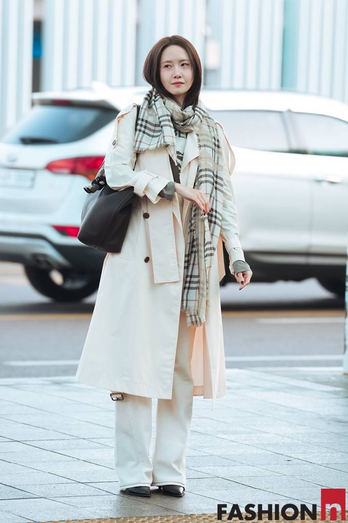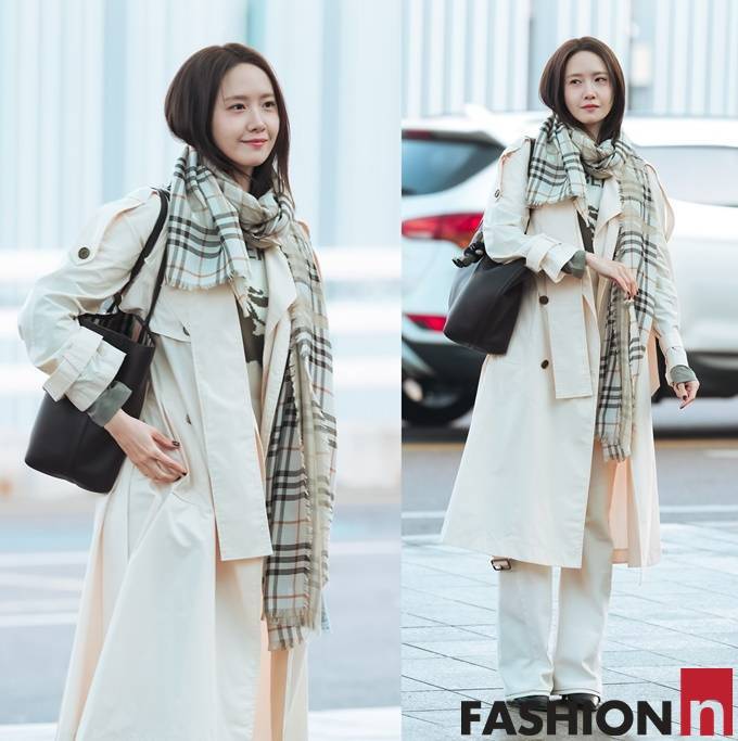이날 윤아는 전통적인 디자인의 클래식한 트렌치 코트와 여기에 체크 머플러를 무심하게 두른 트렌치 스타일로 눈길을 사로잡았다.