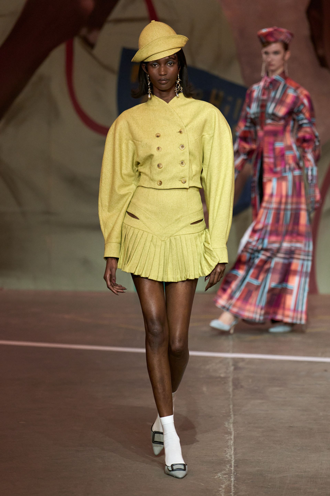 타탄, 하운드투스 등 전통 소재는 강렬한 색상과 실험적인 비율, 예리한 실루엣으로 재해석하며 계절에 구애받지 않는 시즌리스 컬렉션 전반에 녹여냈다.