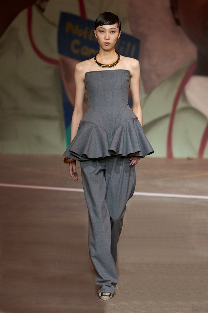 타탄, 하운드투스 등 전통 소재는 강렬한 색상과 실험적인 비율, 예리한 실루엣으로 재해석하며 계절에 구애받지 않는 시즌리스 컬렉션 전반에 녹여냈다.