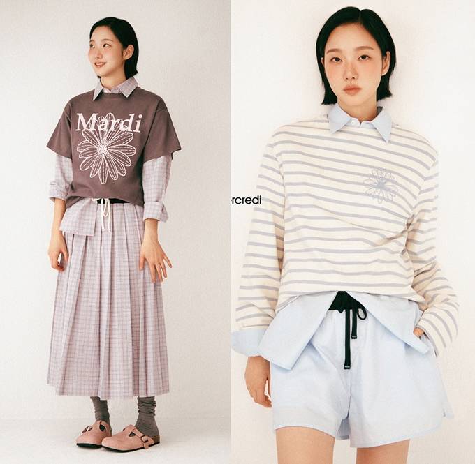김고은은 캐주얼 패션 브랜드 마르디 메크르디와 함께한 2026년 S/S 컬렉션 화보에서 부드러운 파스텔 톤을 중심으로, 셔츠와 티셔츠를 레이어드 한 스타일을 제안하며 봄 시즌 데일리룩을 선보였다.