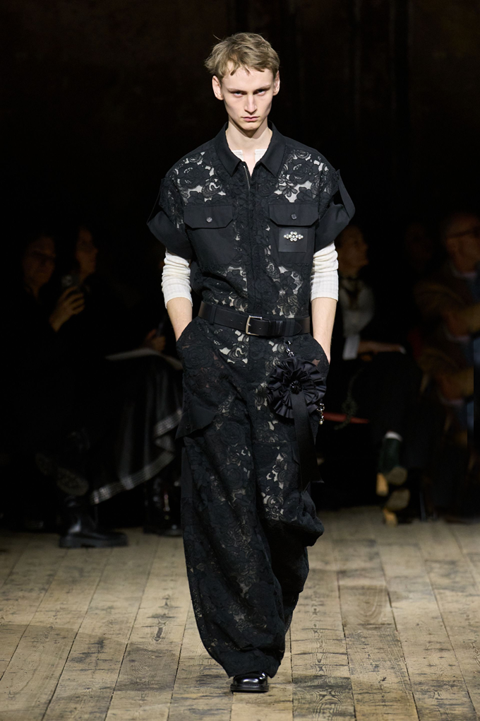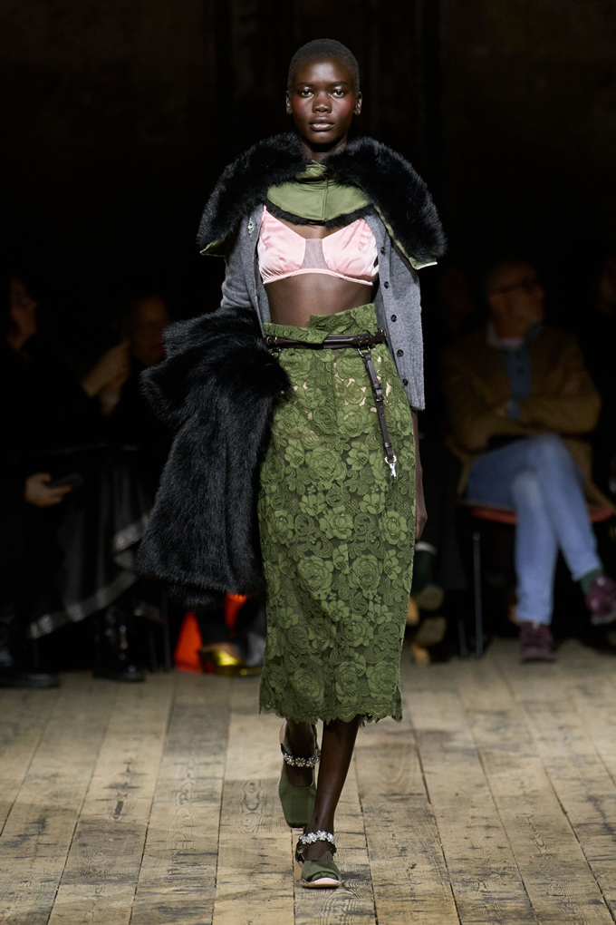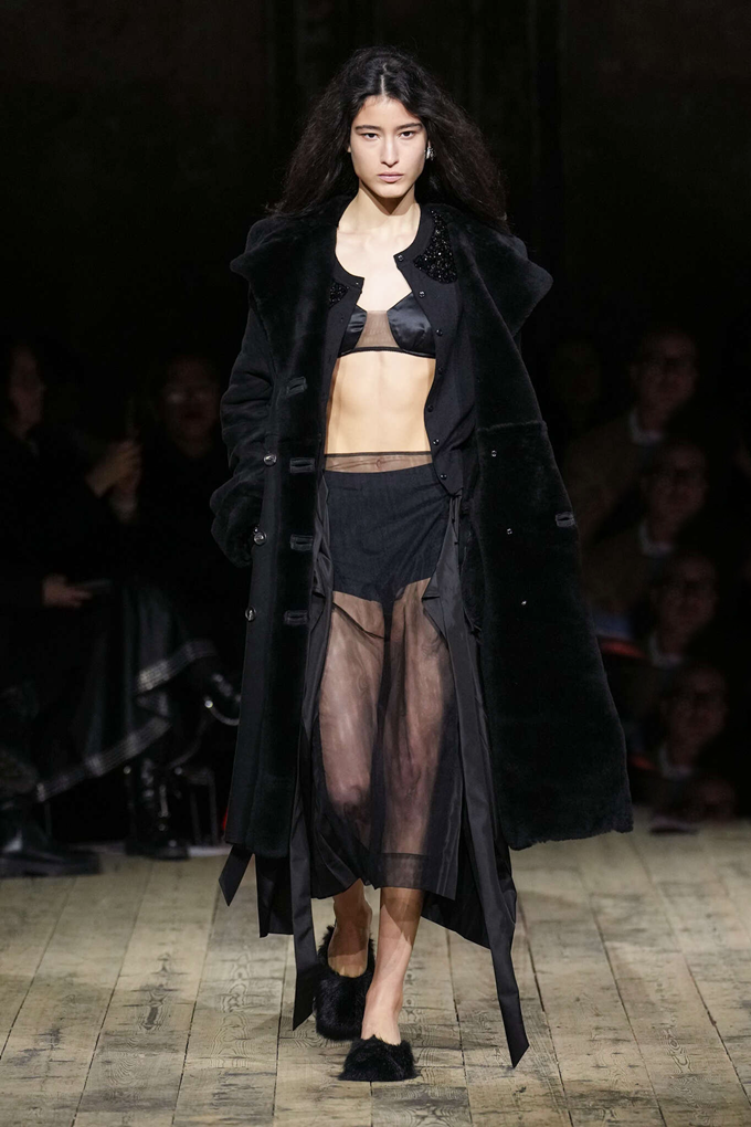 레이스, 튤, 실크, 새틴, 섬세한 꽃무늬, 반짝이는 장식 등 가벼운 소재들이 두꺼운 울, 나일론, 스웨이드, 시어링 소재와 어우러지며 존재감을 드러냈다.
