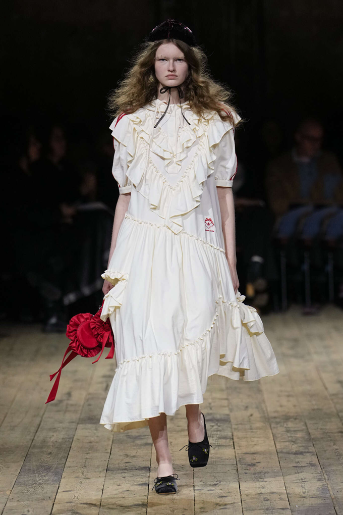 시몬 로샤는 북 런던 언덕 에 자리한 알렉산드라 팰리스 극장으로 관객들을 초대해 웅장하면서도 퇴락한 분위기를 배경으로 로맨스와 현실주의가 조화롭게 어우러진 마법 같은 컬렉션을 선사했다.