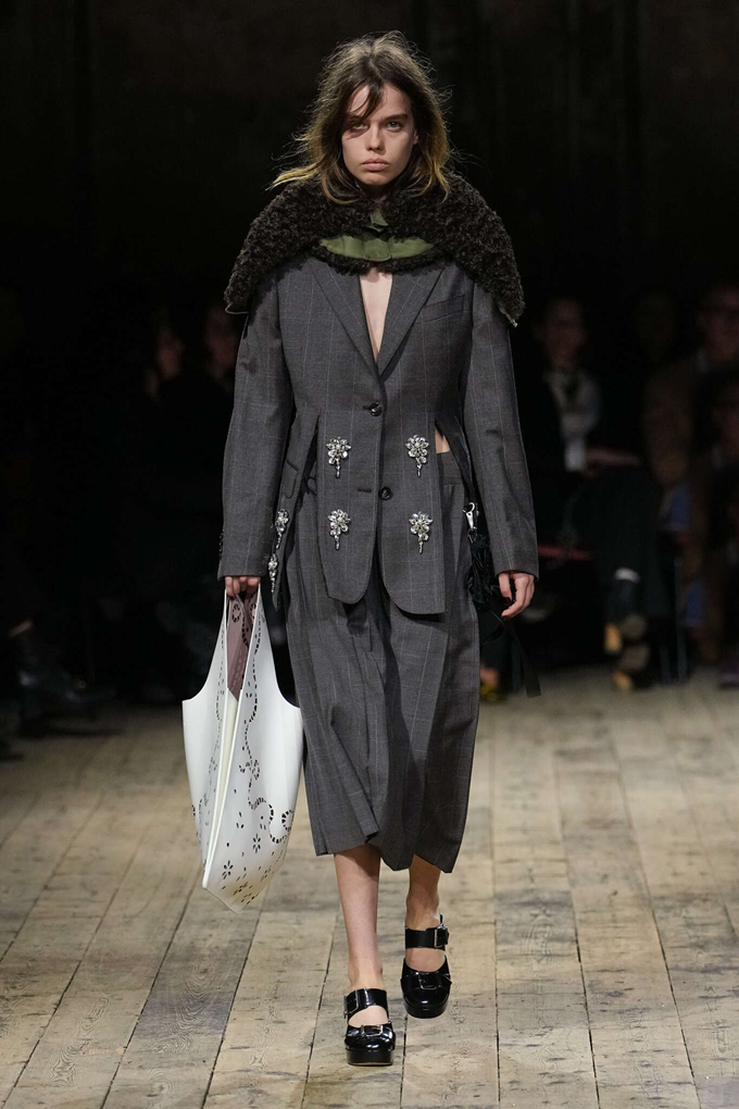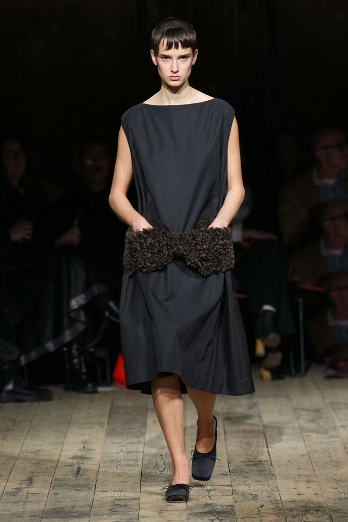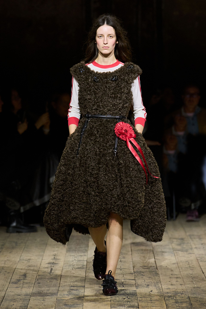 풍성한 시어링은 니트, 야상 재킷, 더블 브레스트 재킷, 봄버 재킷 등에 포인트 디테일로 활용되었으며 갈색 인조 모피는 코트를 장식하거나 소매로 사용되었다.