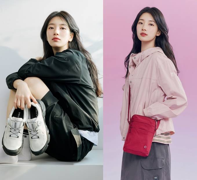 화보 속 수지는 수지는 고기능성 고어 재킷부터 라이프스타일 웨어 ‘포레스트(FOR:REST) 시리즈’까지 다양한 제품을 착용하며 산행과 일상을 아우르는 아웃도어 룩을 선보였다.