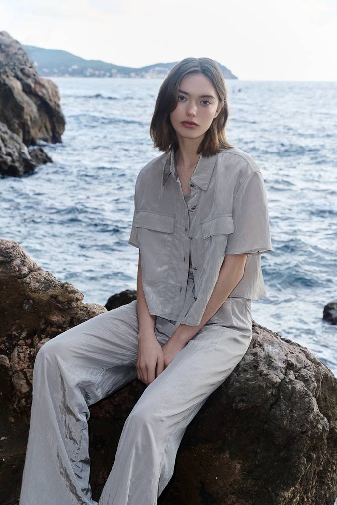 바람을 머금은 듯한 라이트한 소재와 간결한 라인은 한층 부드럽고 편안한 분위기를 연출하며 여름 특유의 맑고 선명한 계절감을 완성했다.