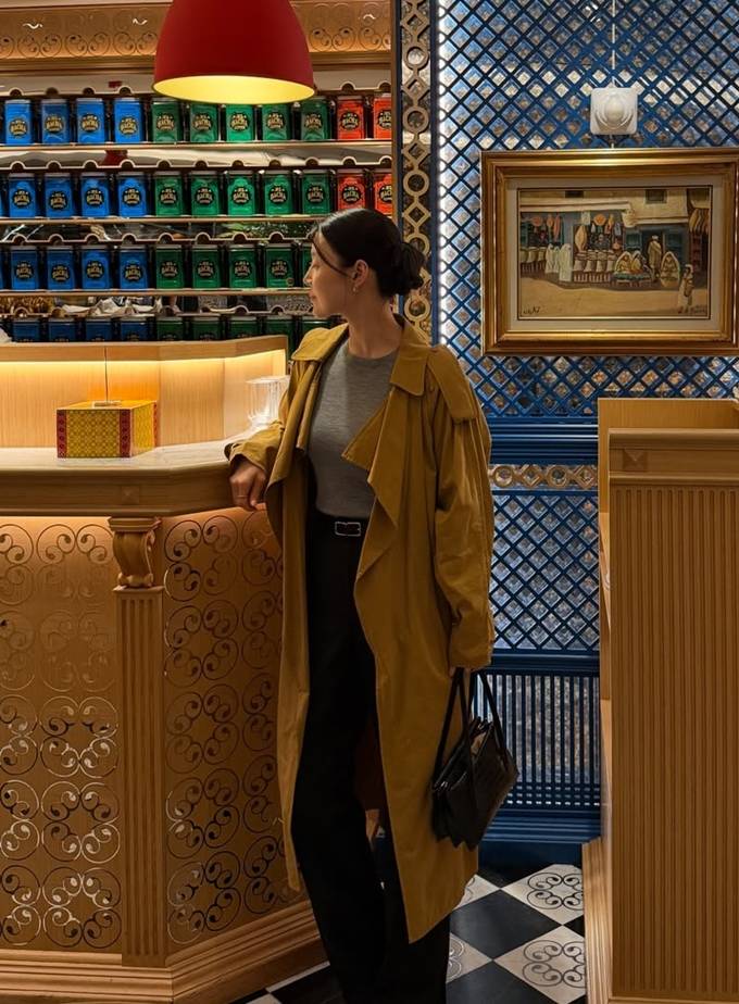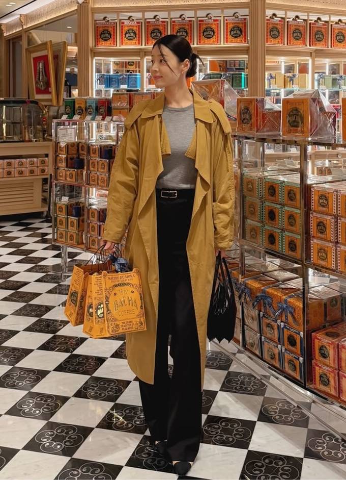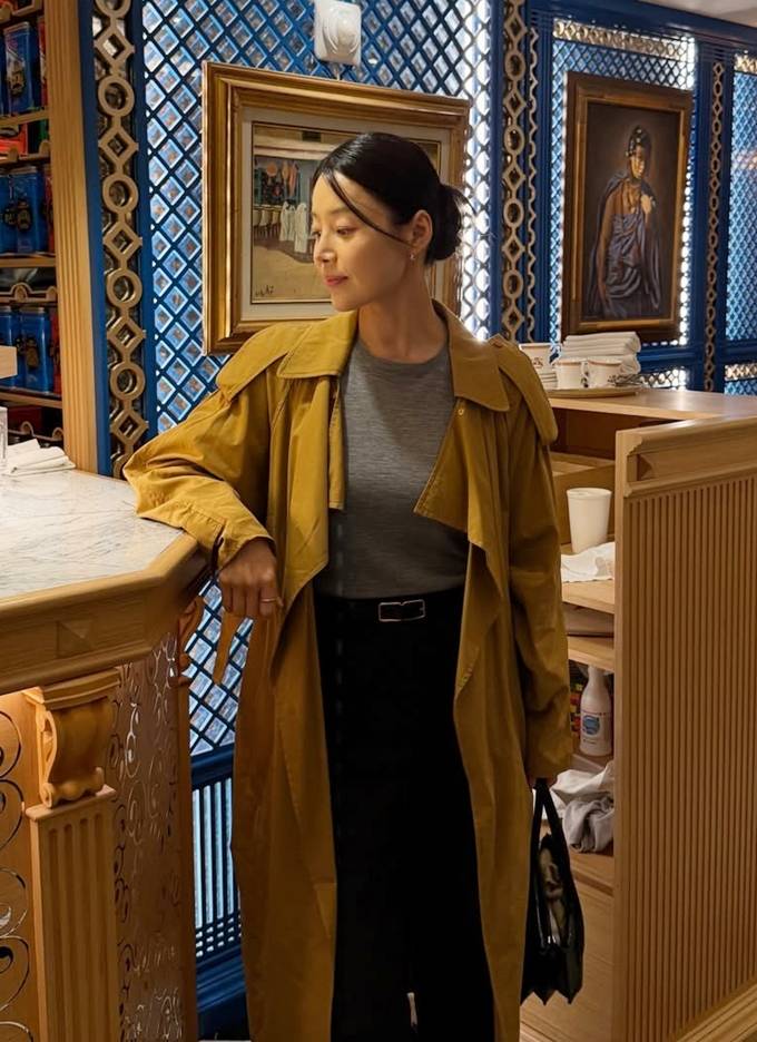 공개한 사진에서 한지혜는 자연스럽게 떨어지는 머스터드 베이지 컬러의 오버사이즈 트렌치코트룩으로 자유스러우면서도 세련된 분위기를 자아냈다.