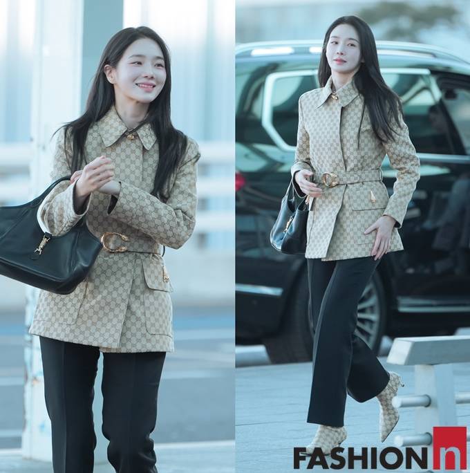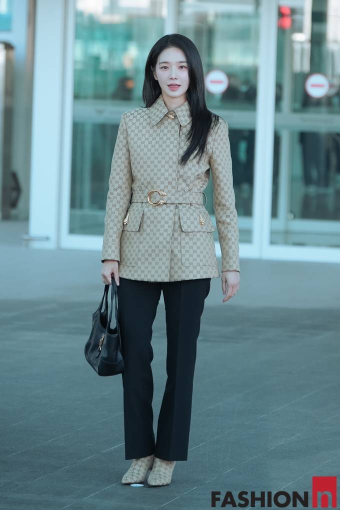 [패션엔 포토] 박규영, 재킷만 입어도 럭셔리! 단아한 아가일 벨티드 재킷 출국룩