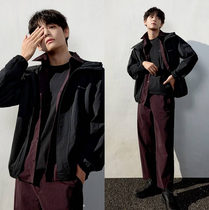 화보 속 뷔는 레이어드 스타일을 중심으로 익숙한 맨투맨 아이템에 컬러 포인트를 더해 가볍지만 센스 있는 스타일을 완성했다. 또한 루트 바람막이 재킷과 셋업을 활용해 깔끔하고 안정적인 스타일을 선보인다.
