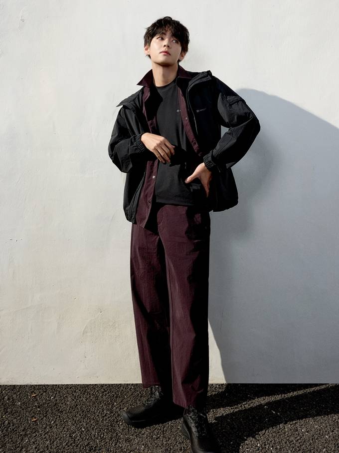 그룹 방탄소년단(BTS)의 뷔가 봄 레이어드 고프코어룩으로 일상이 더 멋진 아웃도어 스타일의 남친룩을 선보였다.