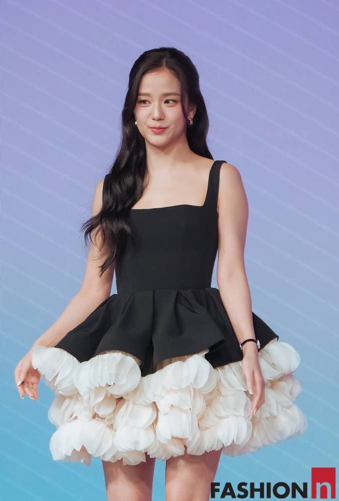 그룹 블랙핑크 지수가 러블리한 티어드 튤 스커트 드레스룩으로 로코 퀸으로 변신했다.
