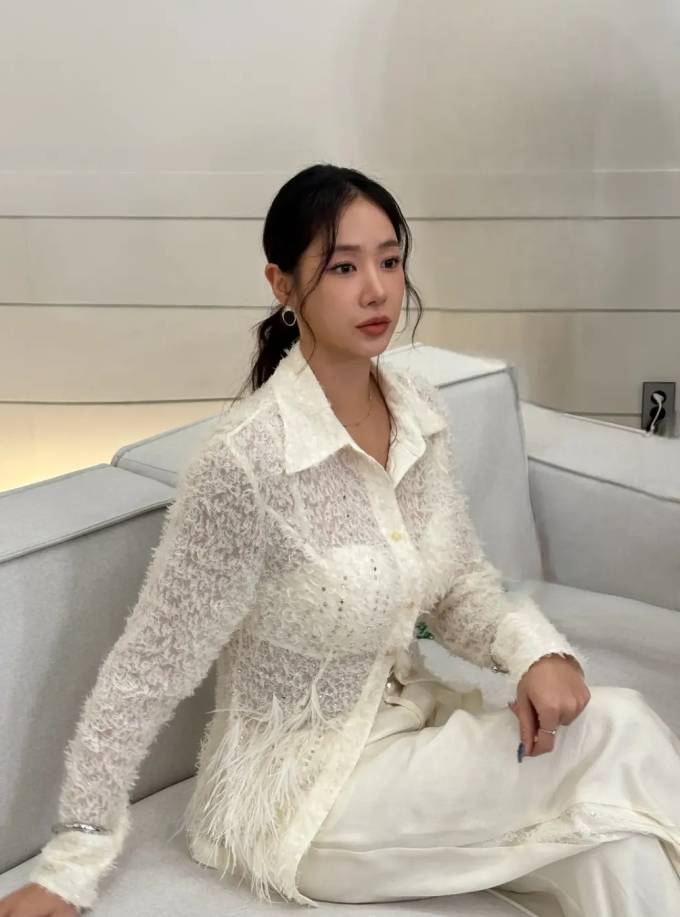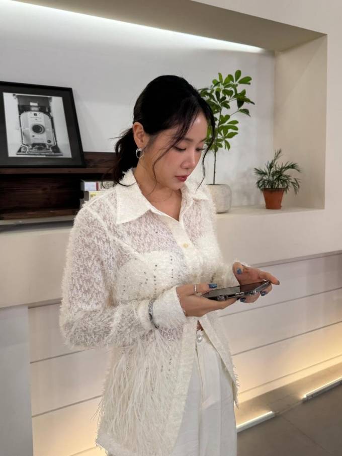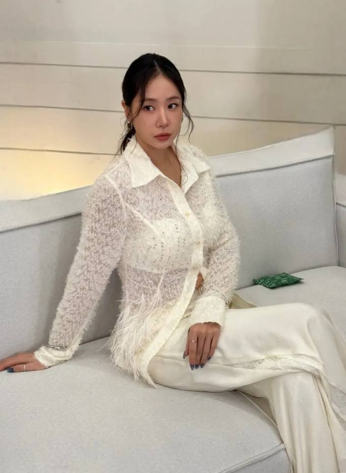공개한 사진에서 소유는 은은하게 비치는 시스루 소재의 셔켓에 와이드 핏 팬츠를 매치해 편안하면서도 세련된 실루엣을 강조했다.
