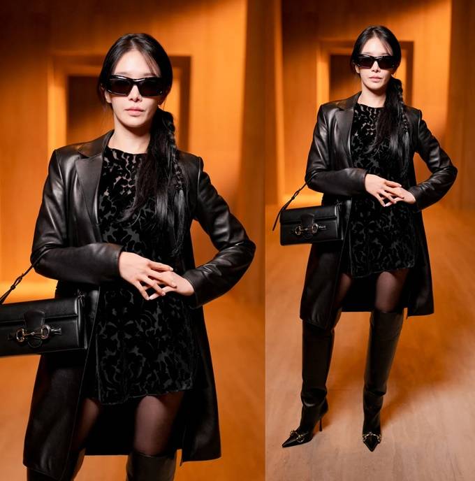 배우 박규영이 걸크러시 가죽 코트룩으로 밀라노 패션위크 구찌 패션쇼를 빛냈다.