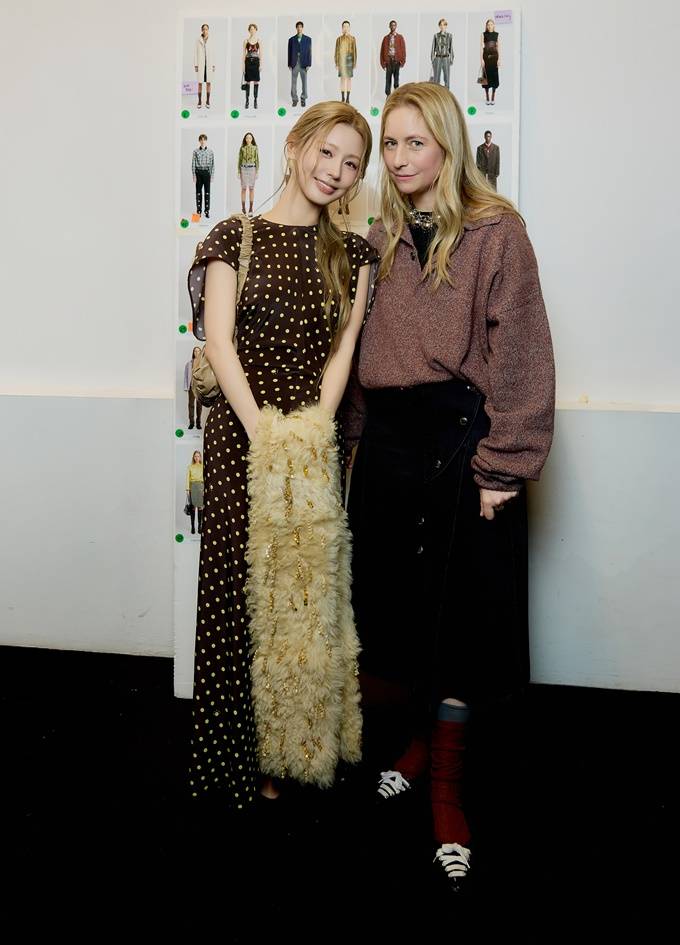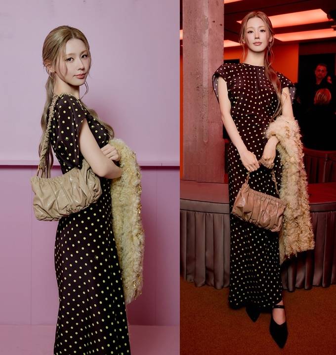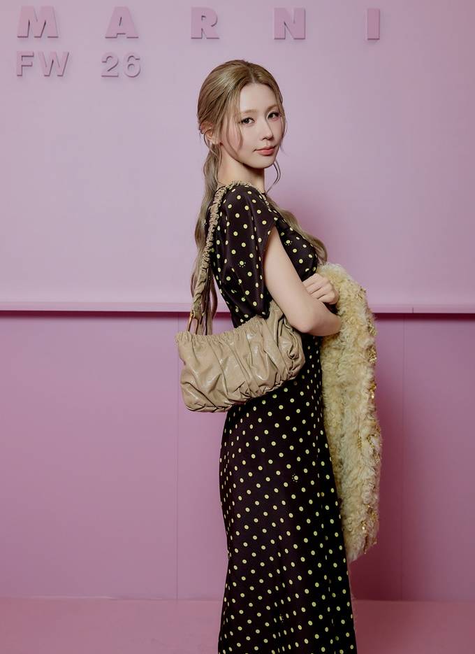 이날 마르니 쇼에 참석한 미연은 도트 무늬의 민소매 맥시 원피스와 여기에 모피 스톨을 매치한 복고풍의 패션위크 스타일을 완성하며 글로벌 패션 관계자와 미디어의 주목을 받았다.
