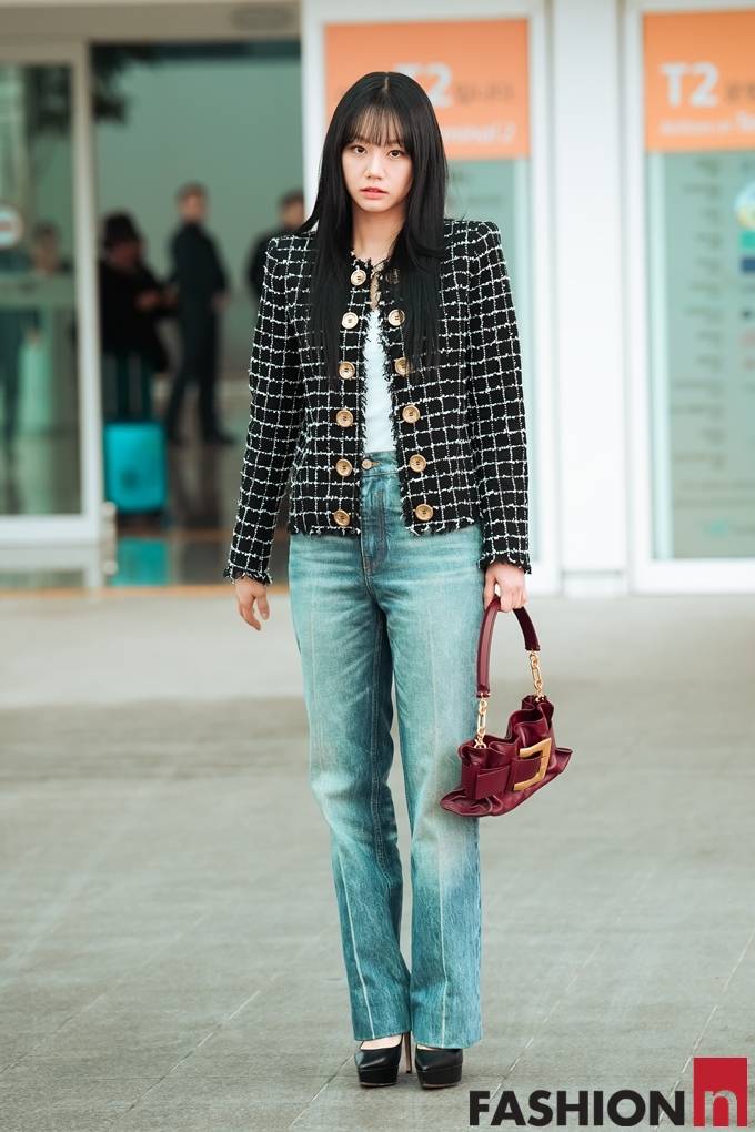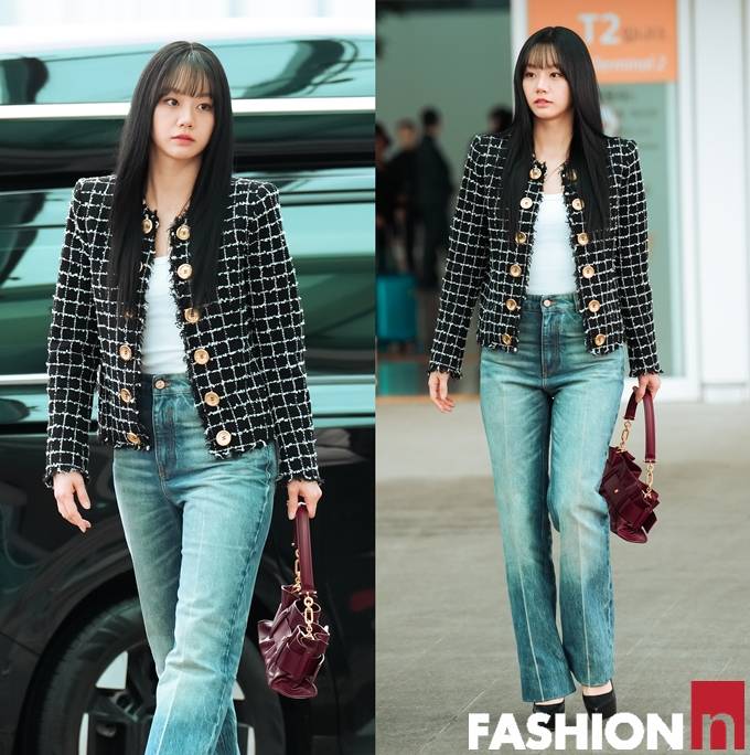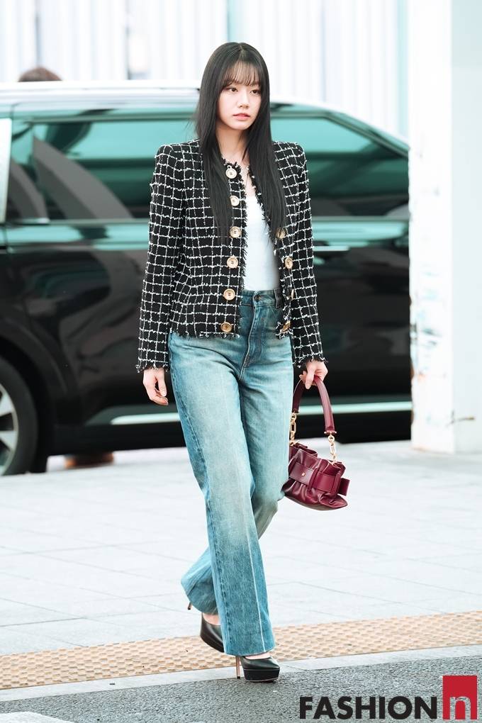 [패션엔 포토] 혜리, 출국길에 빛난 청순 프렌치 시크! 데님&트위드 파리 출국룩