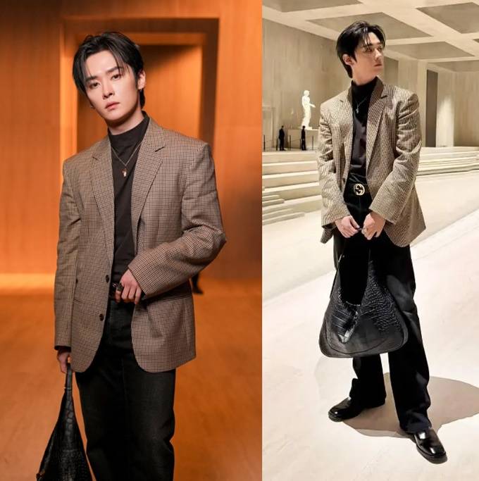 그룹 스트레이 키즈(Stray Kids)의 리노가 클래식한 체크 슈트룩으로 구찌쇼를 빛냈다.