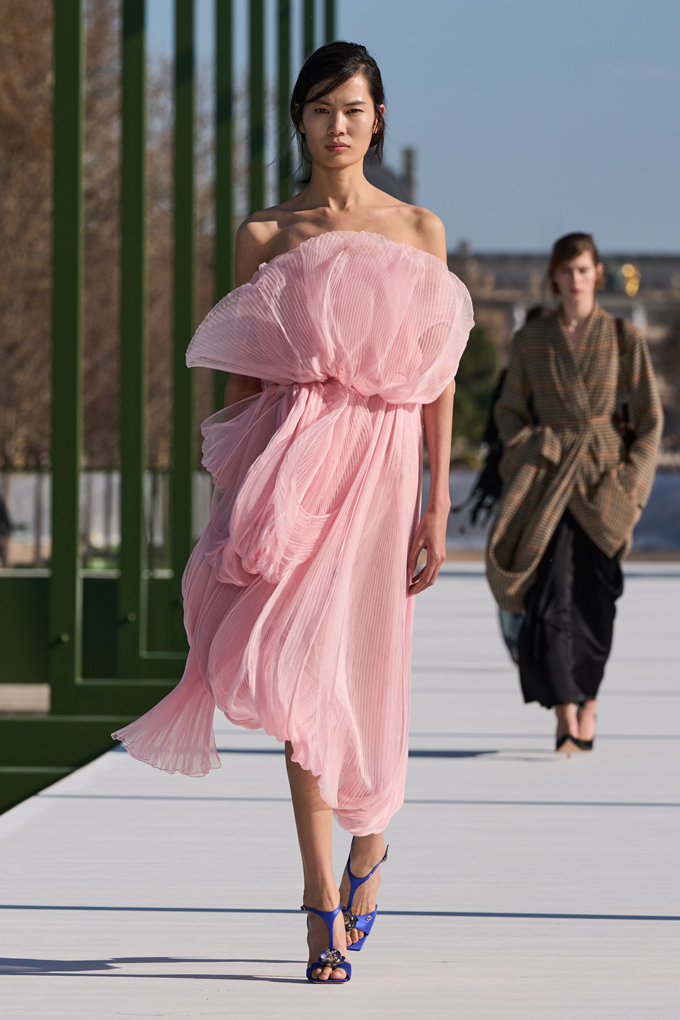 디올 크리에이티브 책임자 조나단 앤더슨은 풍성한 실루엣과 섬세한 드레이핑과 몽환적인 연꽃잎 모티프가 돋보이는 2026 F/W 컬렉션을 선보였다.