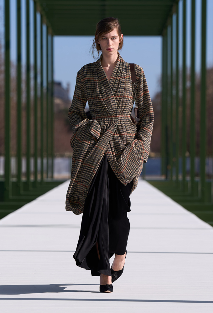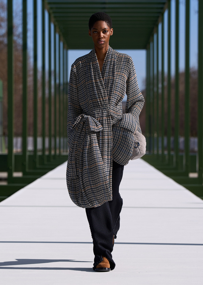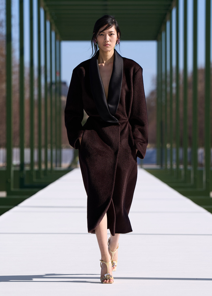 오버사이즈 체크 수트와 새틴 라펠 디너 재킷은 의도적인 무심함을 담아 자연스럽게 흘러내렸다.