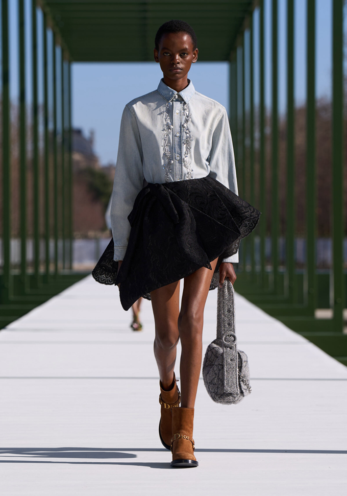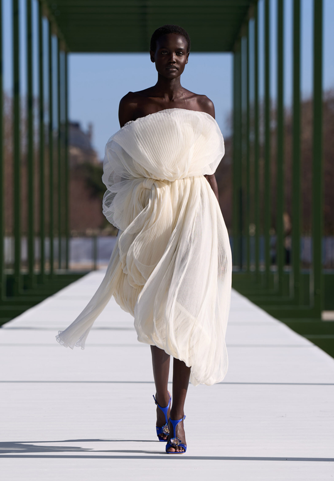 조나단 앤더슨의 두번째 디올 여성복 컬렉션은 잘록한 허리, 조각 같은 볼륨, 몸의 움직임에 맞춰 유연하게 흐르는 소재와 실루엣으로 응축했다.