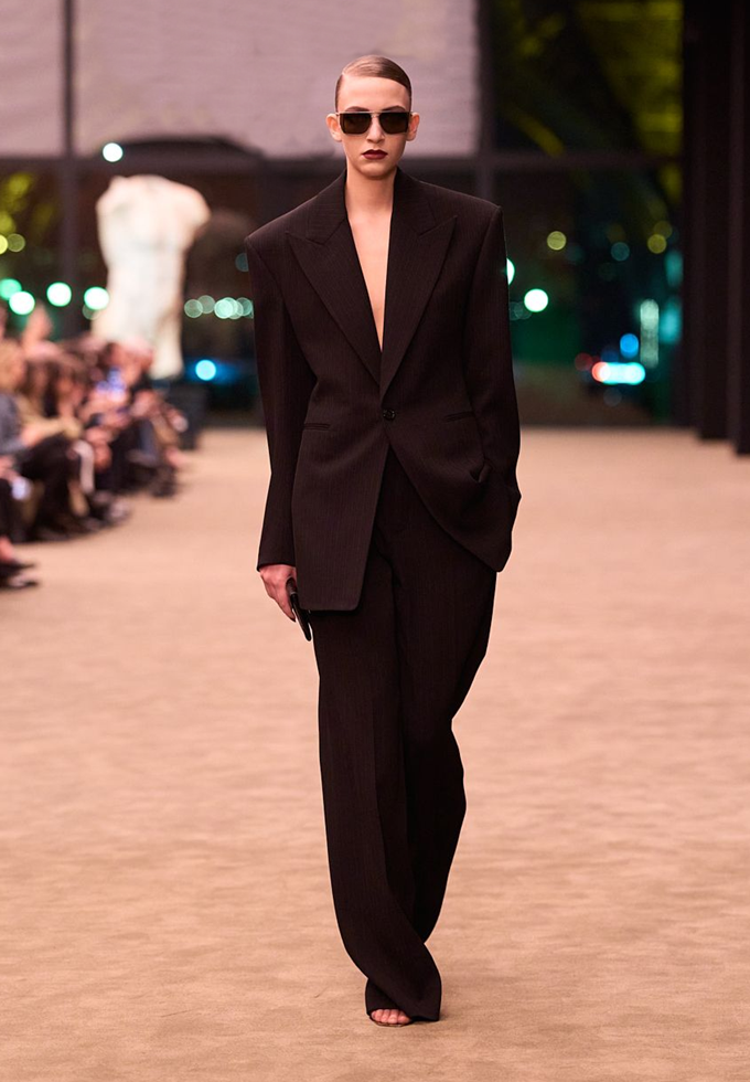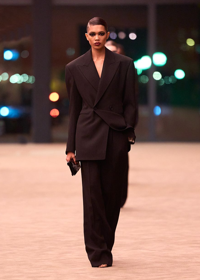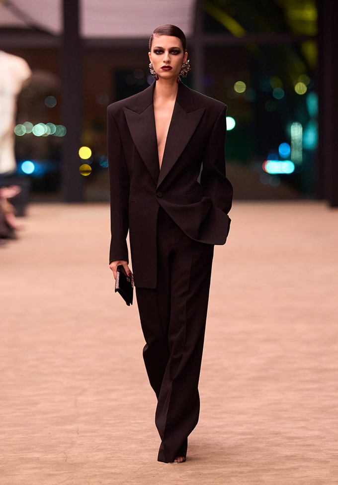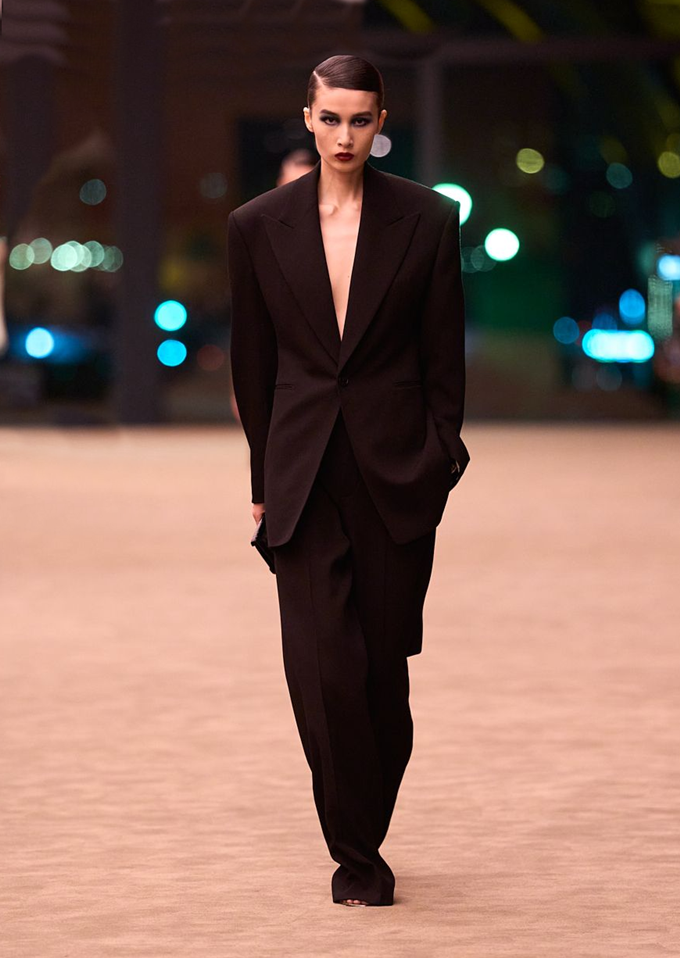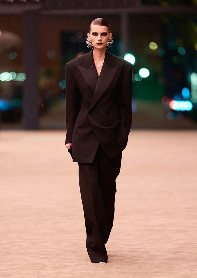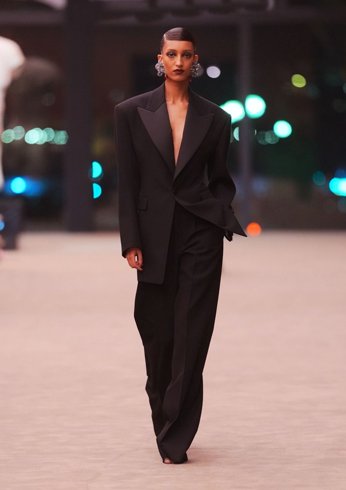 생 로랑을 이끄는 안소니 버카렐로(Anthony Vaccarello)는 지난 2016년 생 로랑 크리에이티브 디렉터로 합류한 이후 80년대의 파워 숄더, 오버사이즈 실루엣, 대날카로운 실루엣으로 정의되는 하우스의 유산을 이어가고 있다.