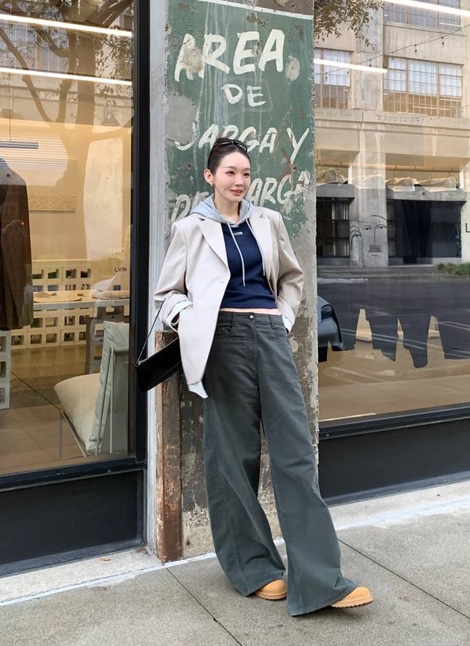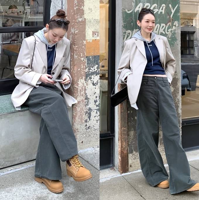 강민경, 패션 CEO가 봄 재킷을 입는 법! 후디와 와이드 팬츠 센스 매치 재킷 레이어드룩