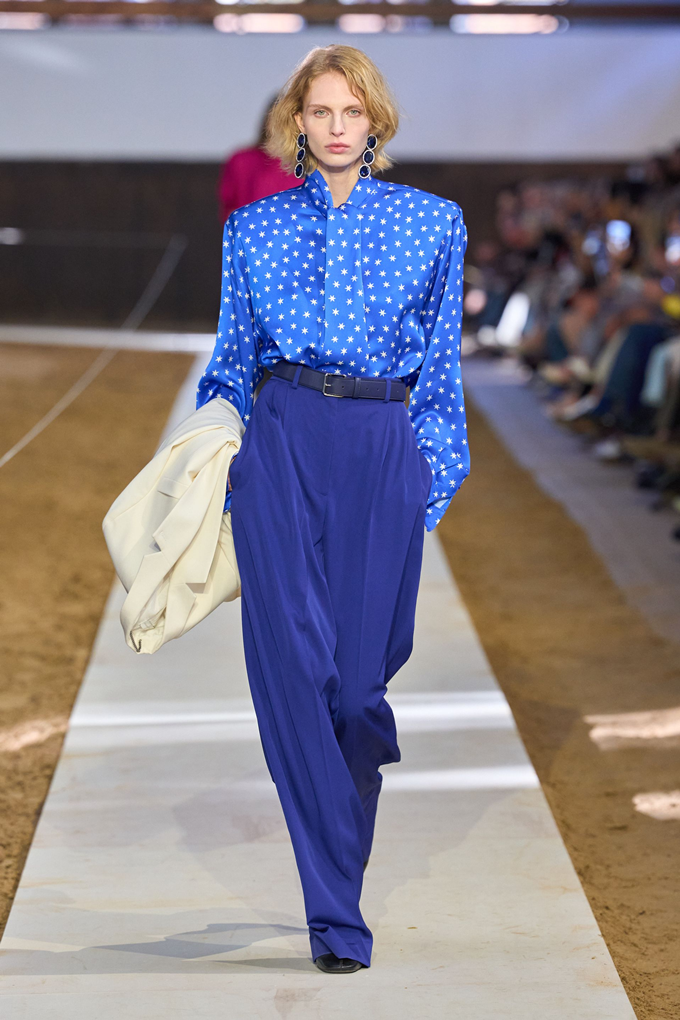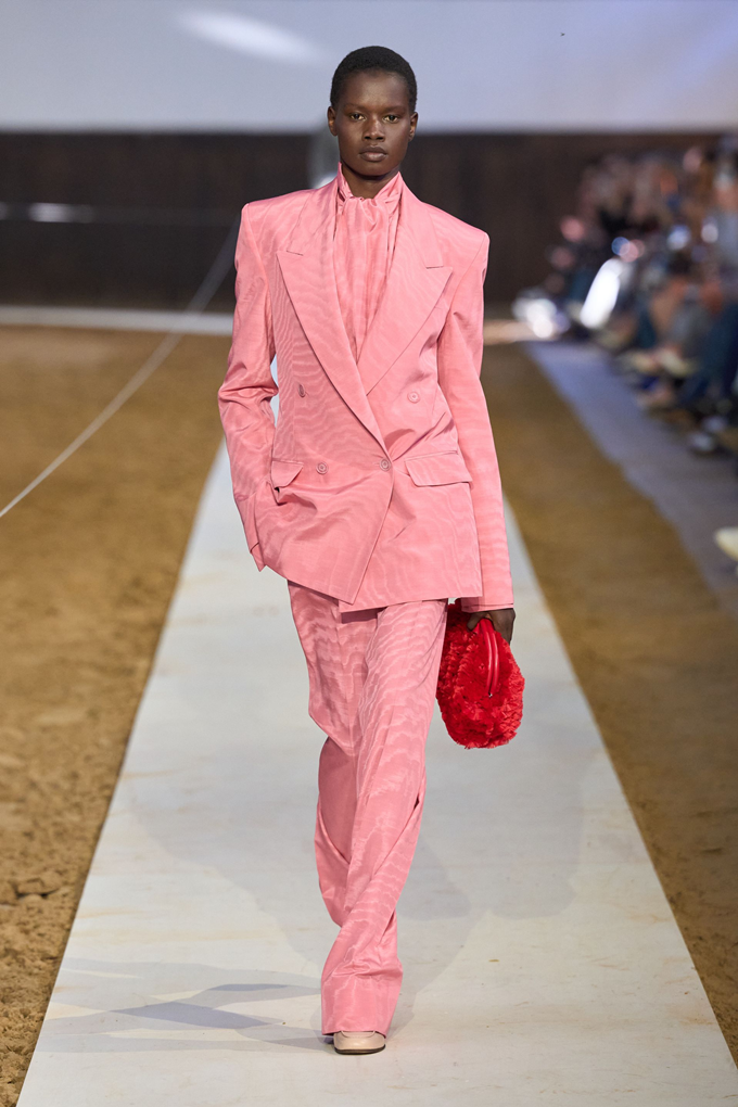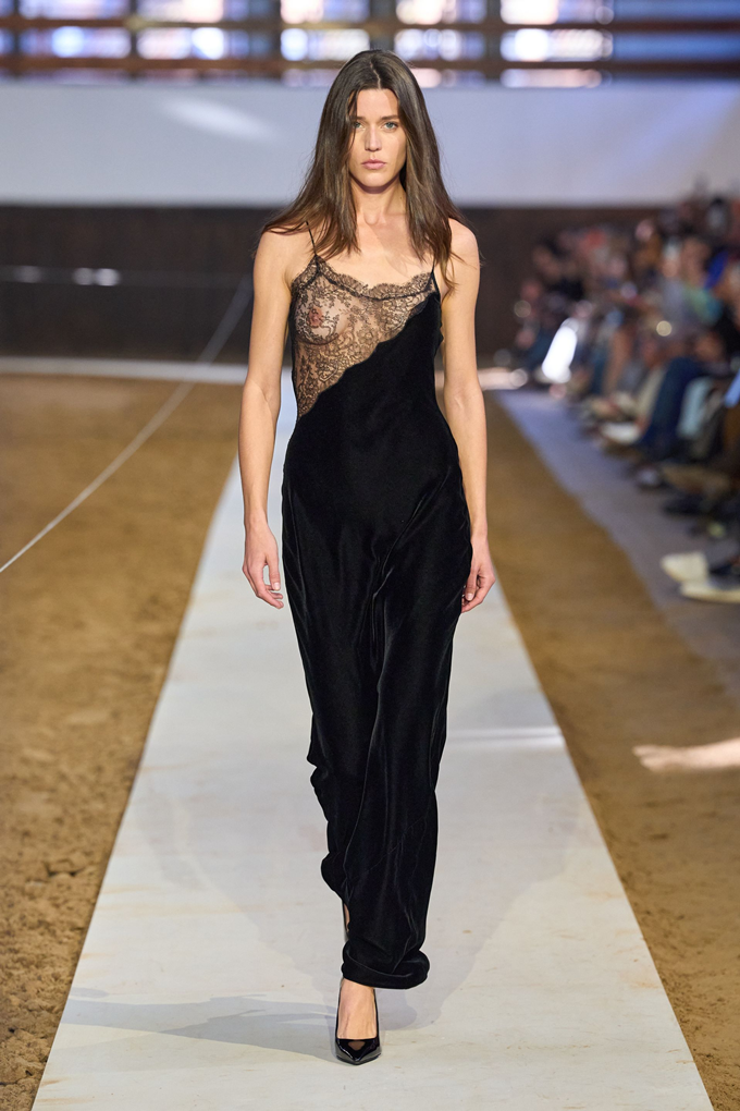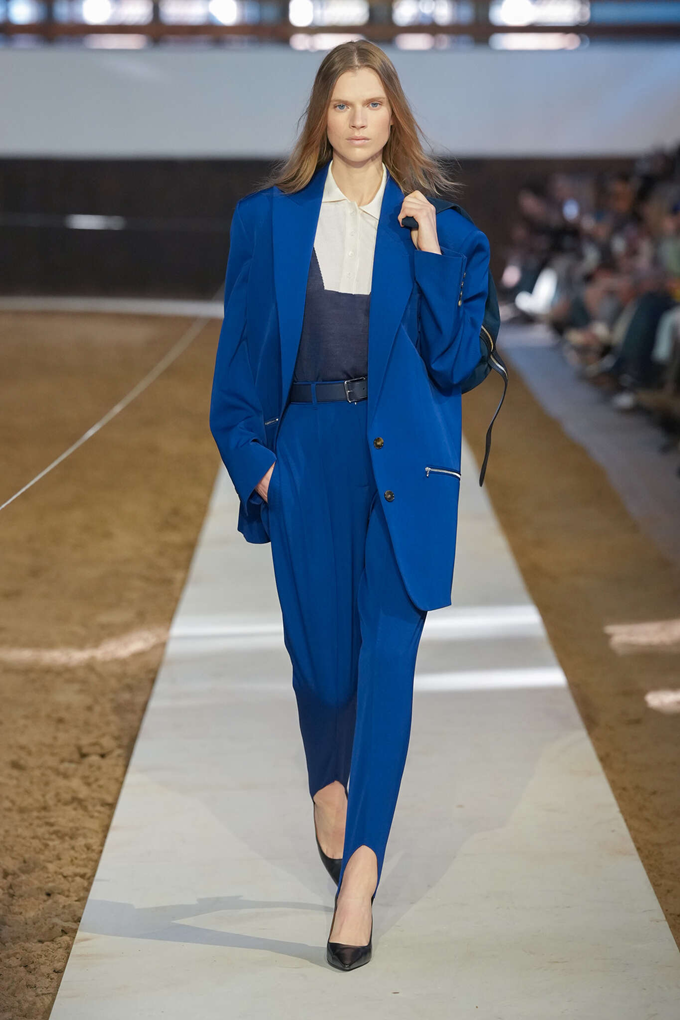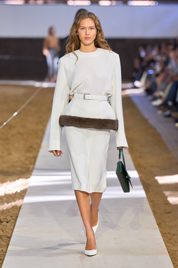 컬렉션의 핵심은 어깨선이 강조된 부드러운 테일러링, 편안한 착용감의 비즈니스 수트, 과하지 않으면서도 은은하게 빛나는 새틴 이브닝 드레스 등 시그니처룩을 비롯해 승마 모티브의 실루엣과 디테일을 반영한 아이템이 선보여졌다.