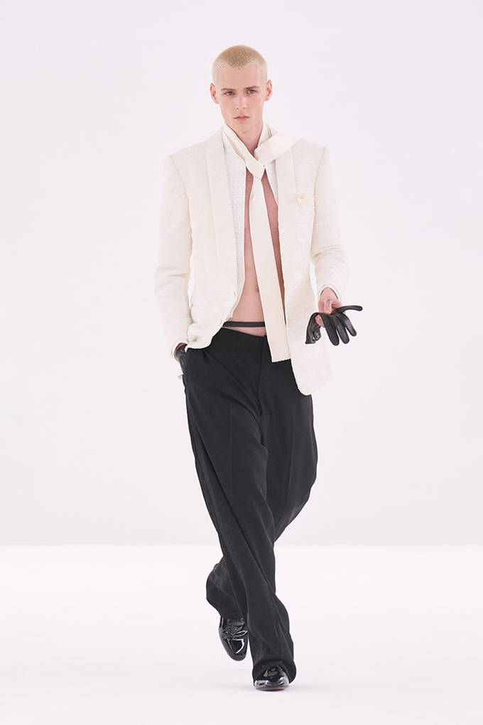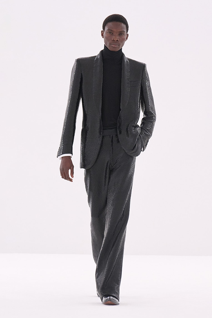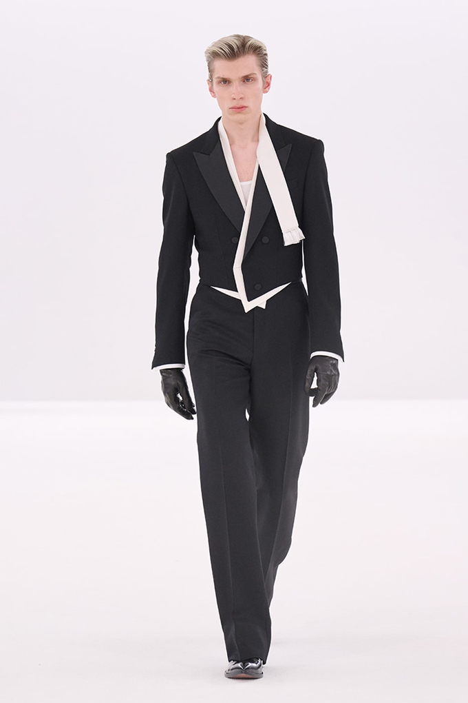 완벽한 수트의 날카로운 엄격함과 그 속에 숨겨진 어두운 일탈의 암시를 아름답게 조화시키며 시대를 초월하는 우아함의 향연과 섬뜩한 유혹의 정수를 선보였다.