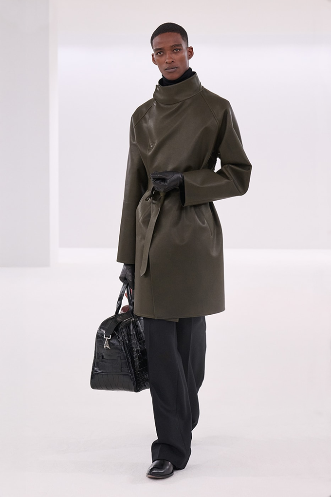 남성복에서는 그래픽 핀스트라이프와 가죽 넥타이를 매치한 핑크 셔츠를, 여성복에서는 악어 가죽 펜슬 스커트와 흰색 울 코트, 같은 소재의 스트레이트 팬츠를 매치하는 등 테일러링을 핵심 요소로 삼아 형태적인 순수함을 드러내는 동시에 내재된 긴장감을 부여했다.