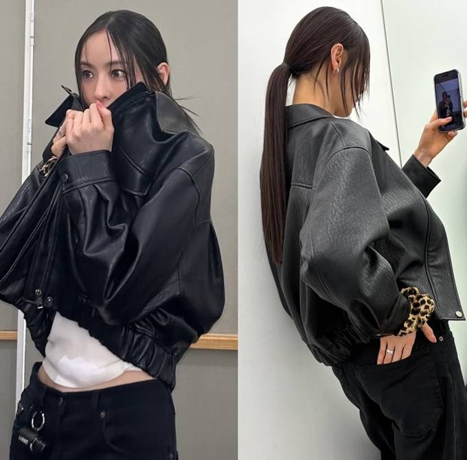 과하지 않으면서도 존재감 있는 레더 재킷 스타일링으로 ‘쿨 걸 룩’의 정석을 보여줬다.