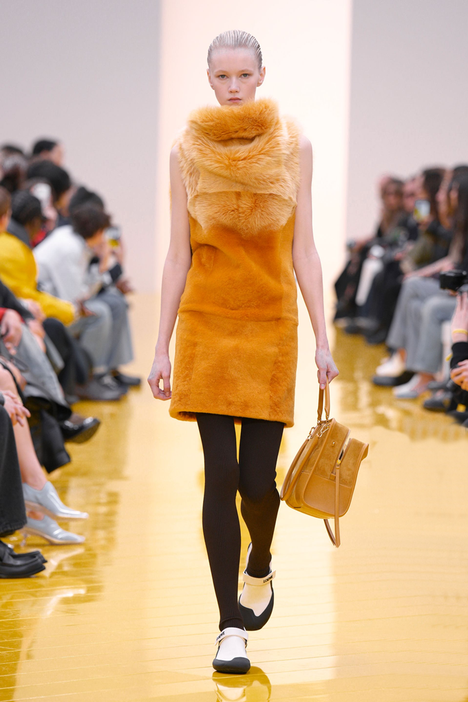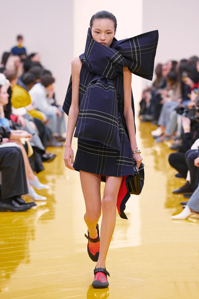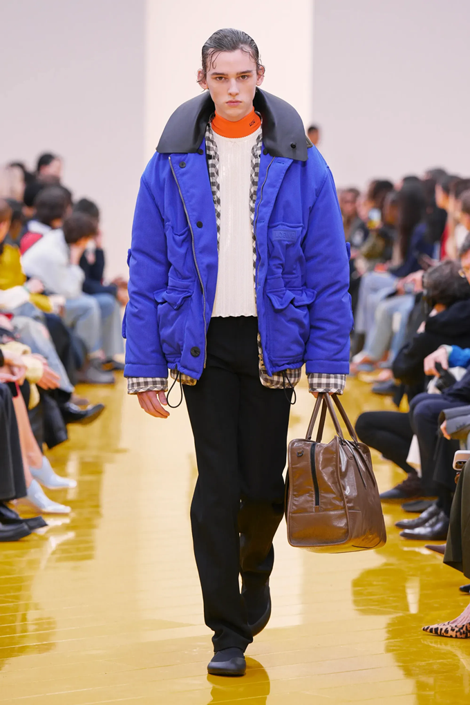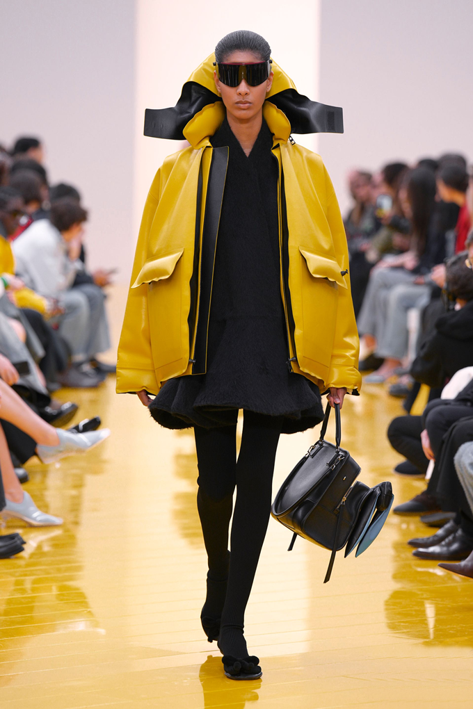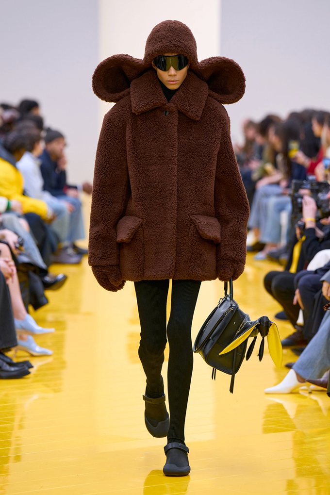 실루엣은 과장된 비율과 비대칭 컷팅 사이에서 조화를 이루고 강렬한 색상과 구조적인 소재는 움직임과 입체감을 만들어내며 창의적인 뉴 로에베룩을 창조했다.