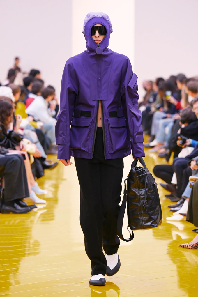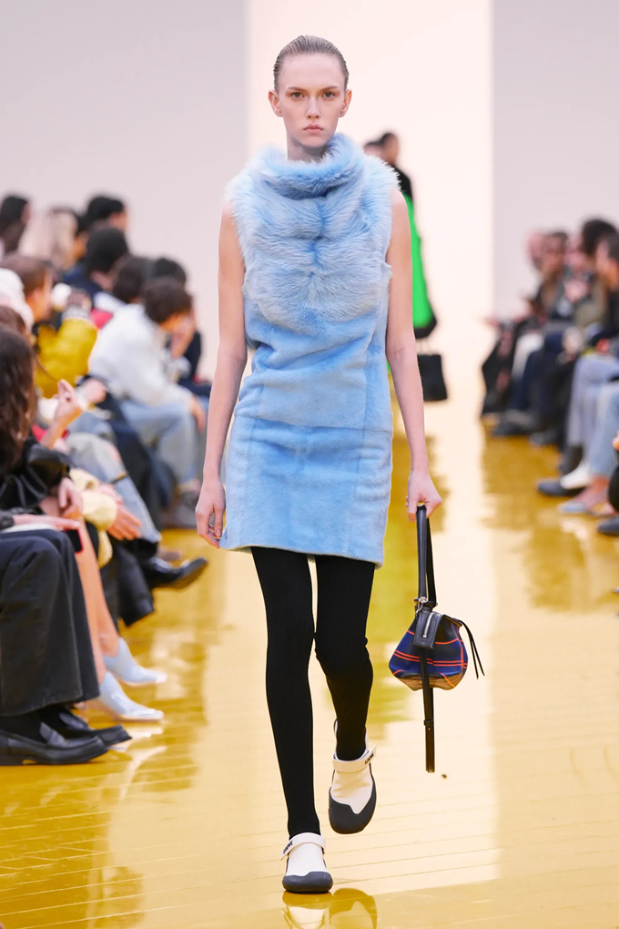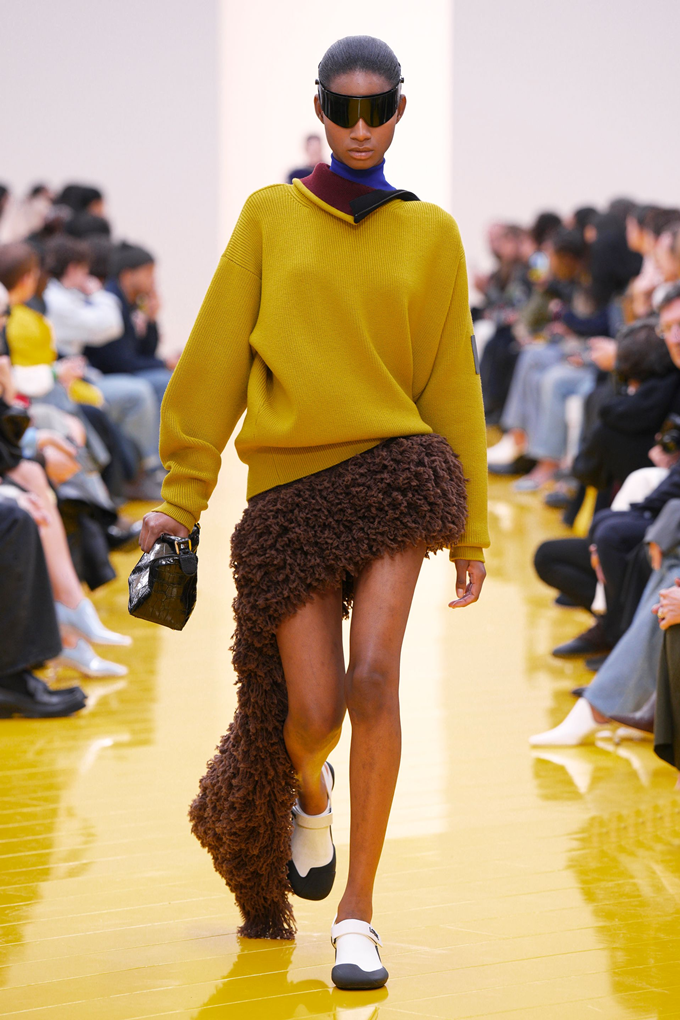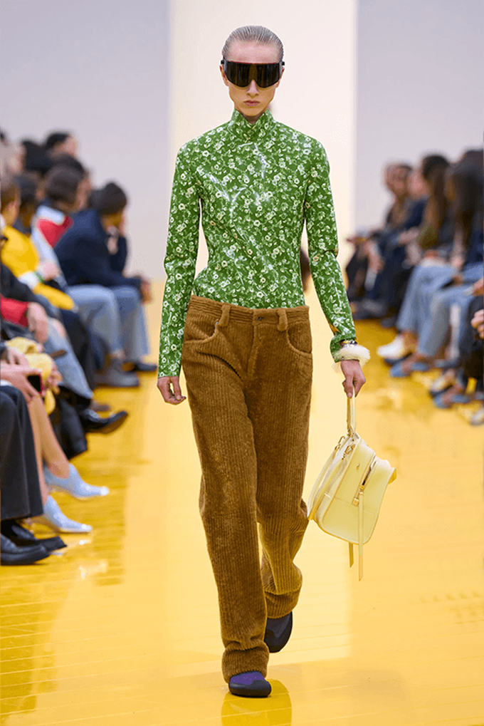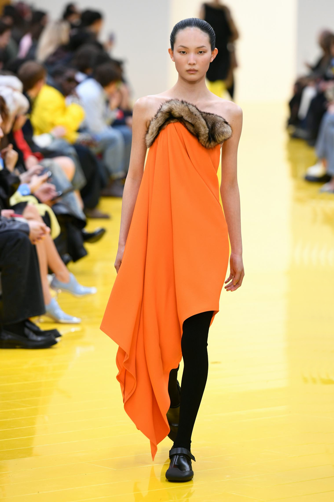 실루엣은 과장된 비율과 비대칭 컷팅 사이에서 조화를 이루고 강렬한 색상과 구조적인 소재는 움직임과 입체감을 만들어내며 창의적인 뉴 로에베룩을 창조했다.