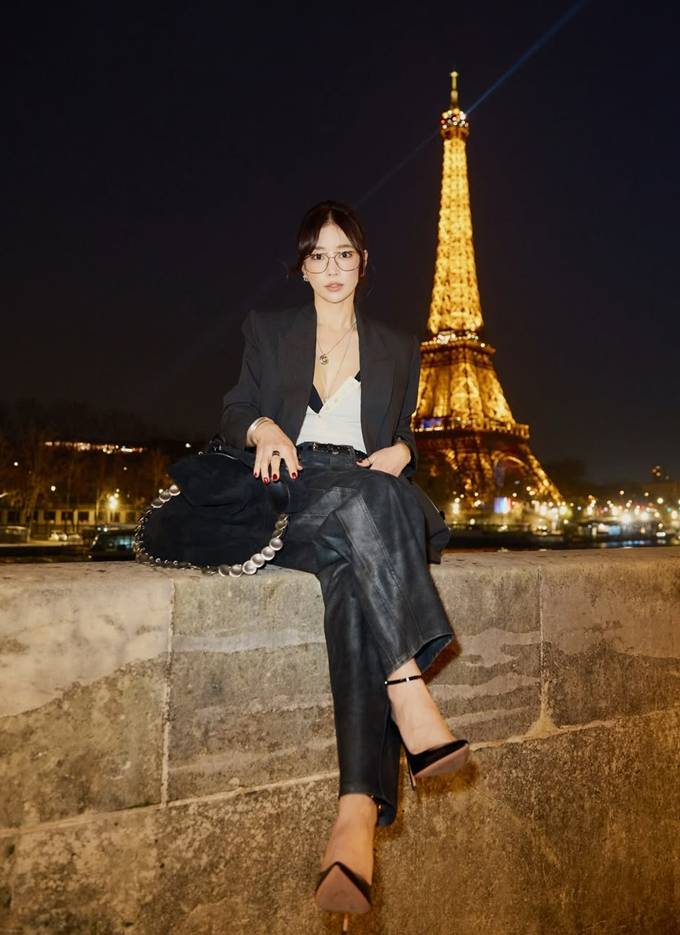 배우 기은세가 깊게 파인 슬립 톱에 재킷을 레이어드한 프렌치 시크룩으로 파리의 낭만을 제대로 즐겼다.