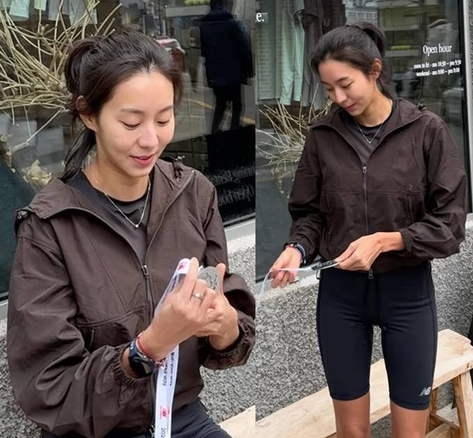 유이, 이유있는 탄탄 바이커 쇼츠 핏! 놀라워 하프 마라톤 완주 레깅스 애슬레저룩
