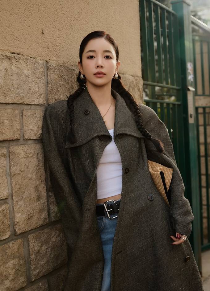기은세, 파리 거리 누빈 42세 걸리시 미모! 양갈래 헤어에 테일러링 실루엣 롱 코트룩