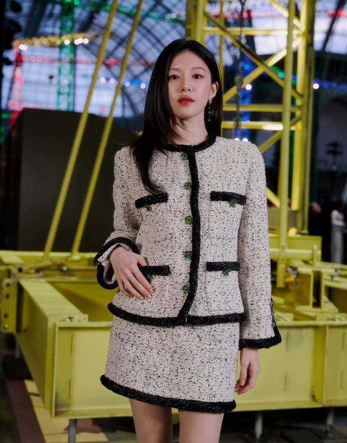 배우 고윤정이 단아한 분위기의 클래식한 트위드 슈트룩으로 샤넬쇼를 빛냈다.