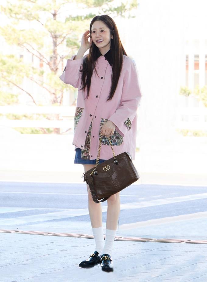 이날 고현정은 화사한 핑크 컬러의 하프 코트와 로맨틱한 플라워 패턴 디테일의 데님 쇼츠를 매치한 소녀같은 봄맞이 룩으로 나이를 거스른 동안 미모를 빛냈다.