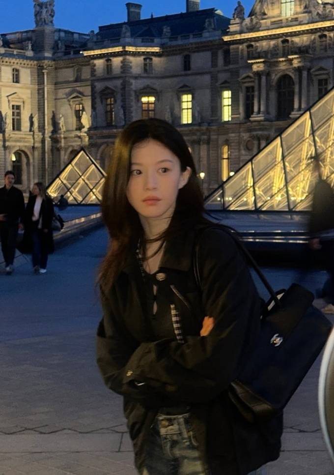 배우 고윤정이 블루종 집업 재킷과 청바지 산책룩으로 파리의 밤을 즐겼다.