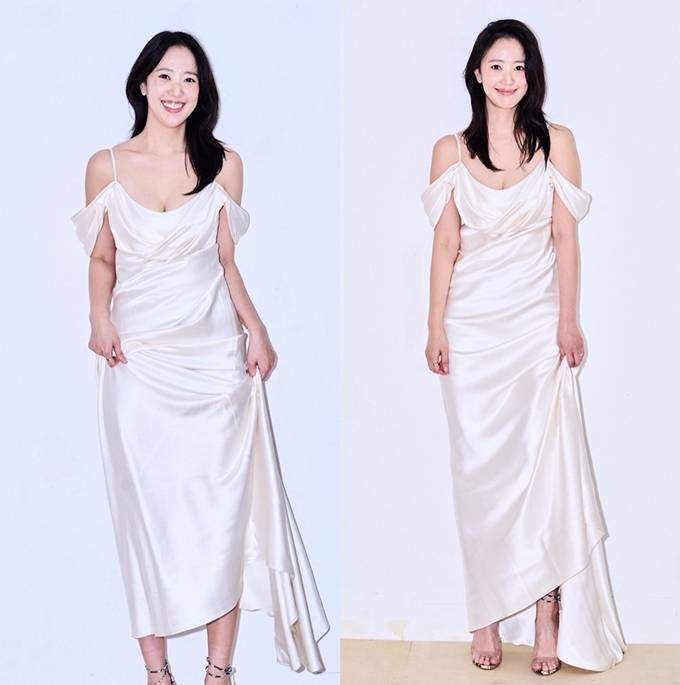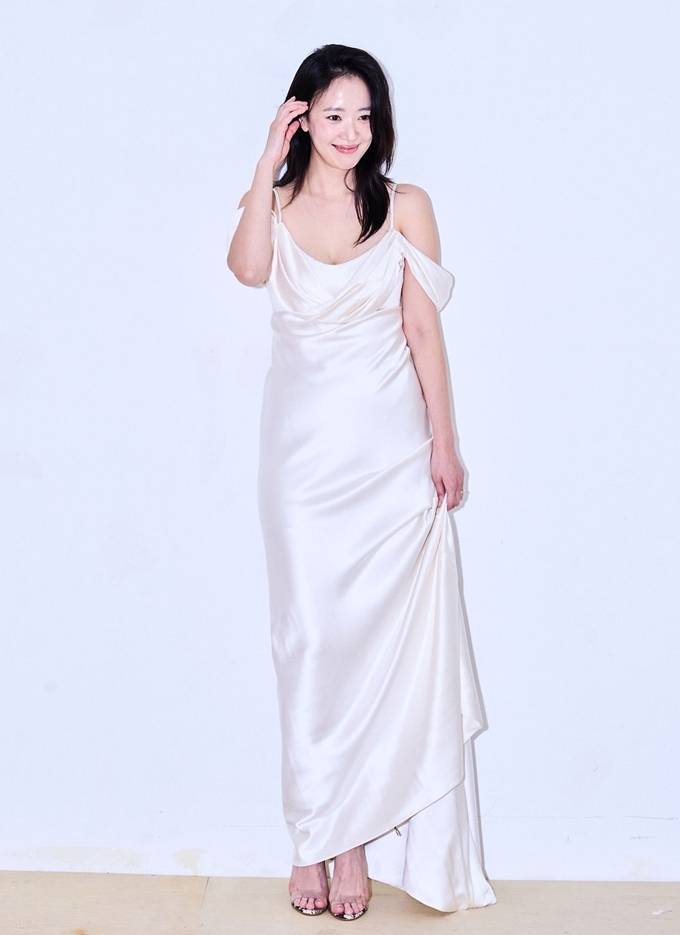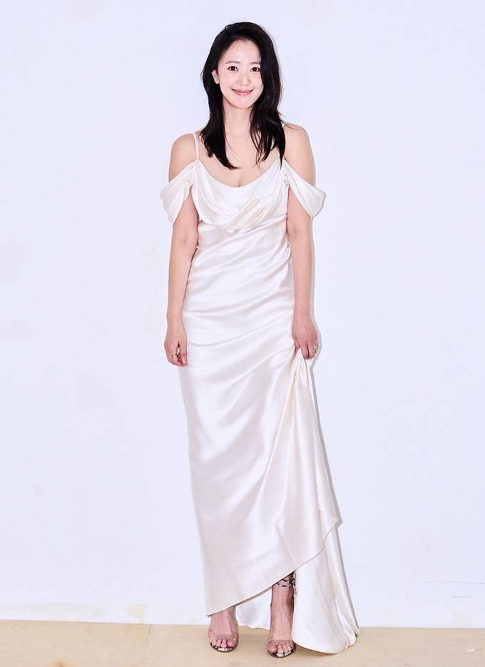배우 전혜진이 아이보리 오프숄더 슬립 실키 드레스룩으로 우아미를 뽐냈다.