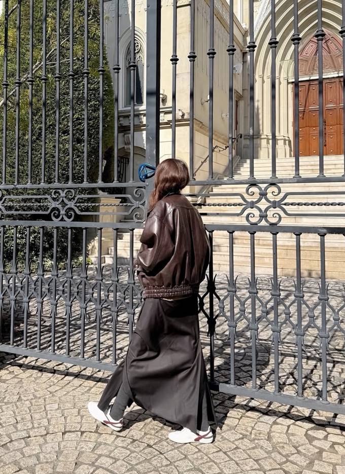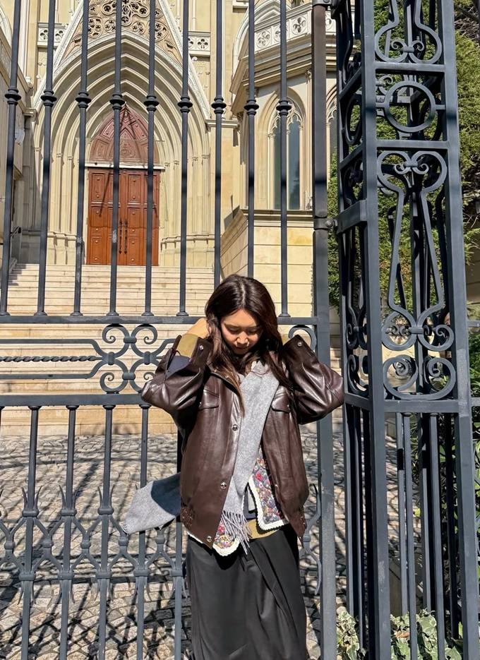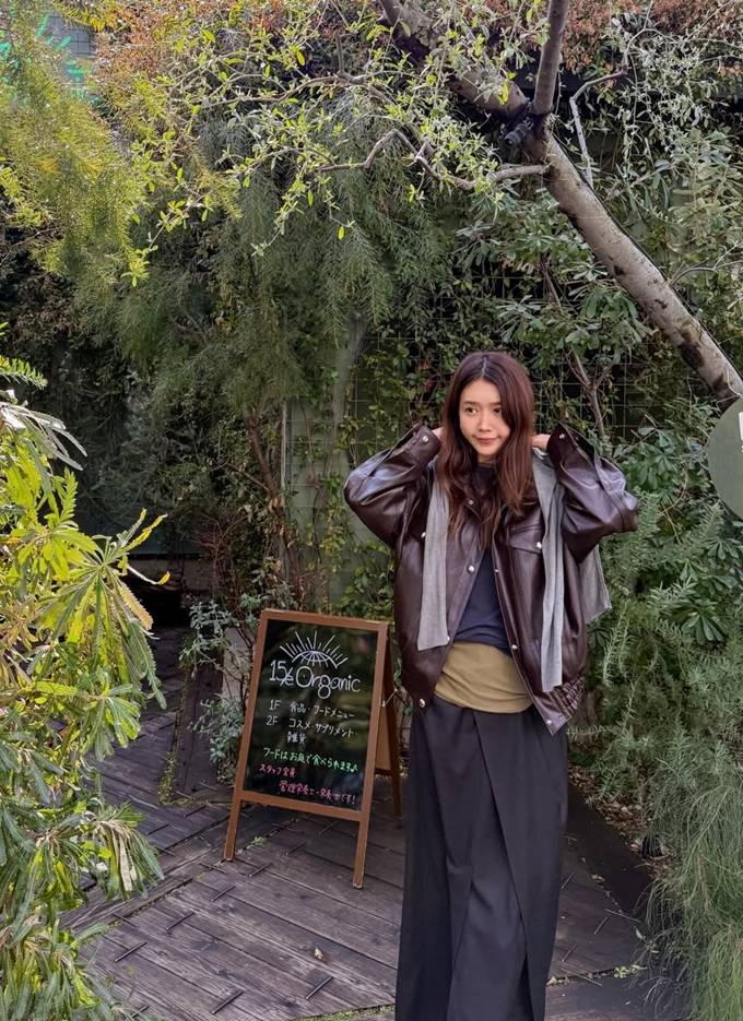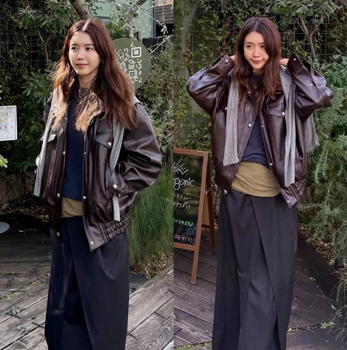 공개한 사진에서 채정안은 바지 위에 랩 스커트를 레이어드한 스칸트 스타일에 집업 레더 재킷을 매치한 출장룩으로 힙하면서도 스타일리시한 여행 스타일을 완성했다.