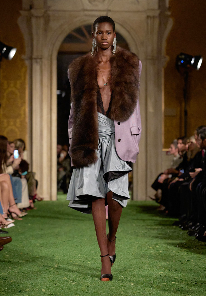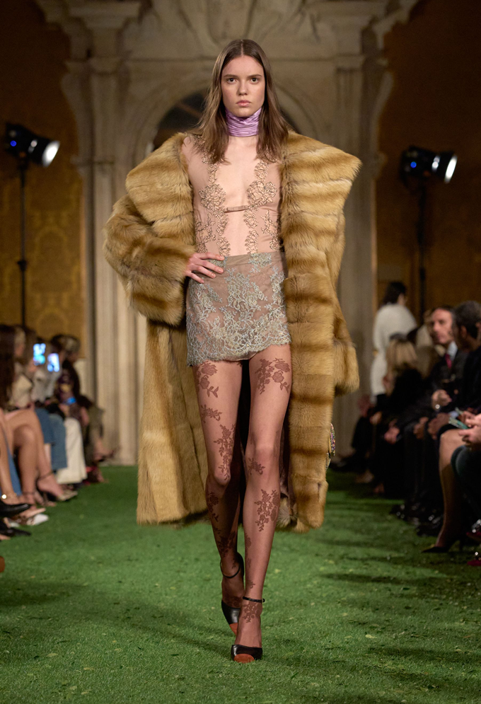 발렌티노는 색상, 소재, 패턴의 변주를 통해 화려하고 다양한 모피룩에 균형미를 부여했다.
