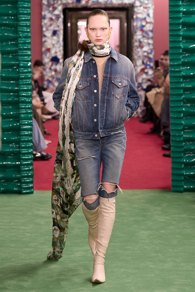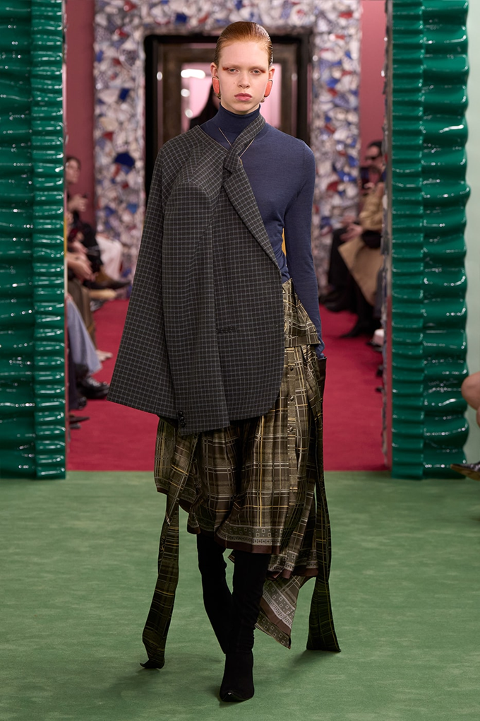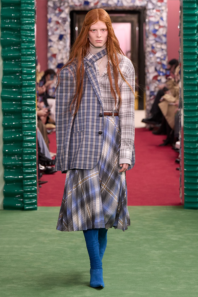 디올, 드리스 반 노튼, 아크네 스튜디오 등은 테일러링과 아우터에 여러 체크 패턴을 겹쳐 활용했고, 끌로에는 러플 장식의 하이넥 맥시 드레스로 보헤미안 감성을 고수했다.