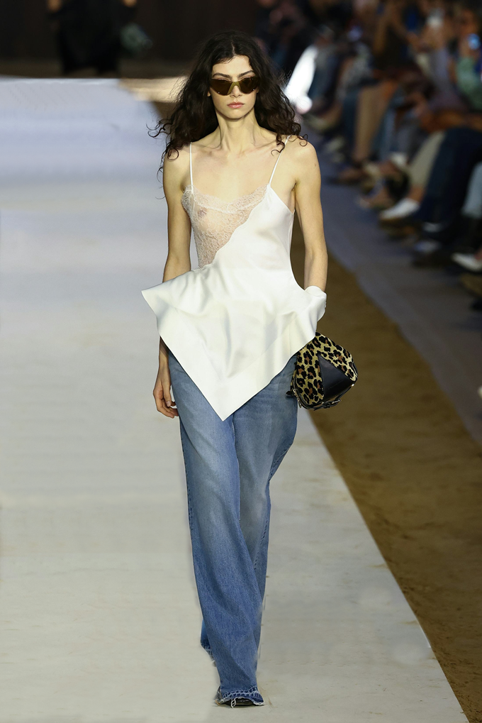 발망은 거대한 다이아몬드 모양의 컷아웃 드레스 등 다양한 시스루 드레스룩, 스텔라 매카트니는 레이스 장식의 탑과 청바지를 매치해 심플하면서도 멋스러운 룩을 완성했다.